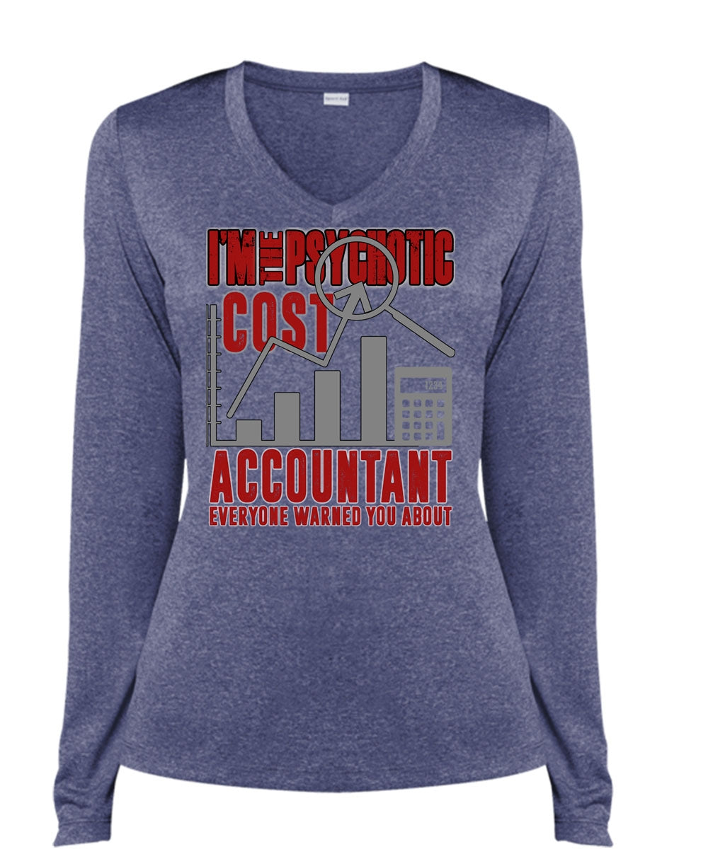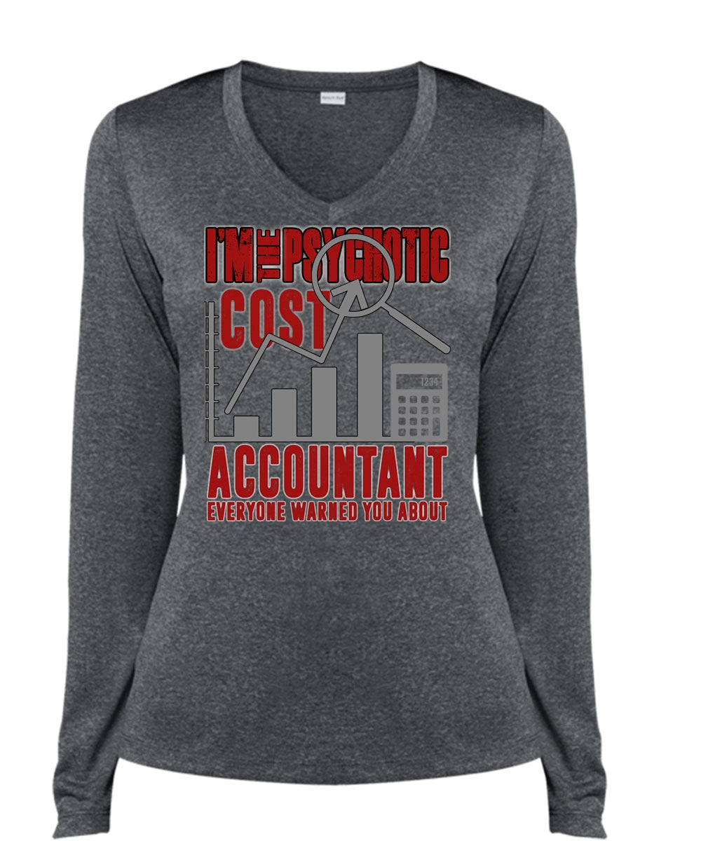 I'm The Psychotic Cost Accountant T Shirt, Being An Accountant T Shirt, Cool Shirt (Ladies LS Heather V-Neck)