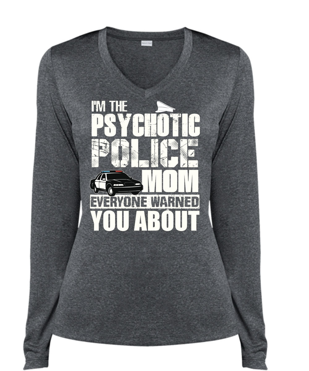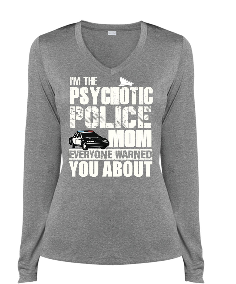I'm The Psychotic Police Mom T Shirt, Being A Police T Shirt, Cool Shirt (Ladies LS Heather V-Neck)
