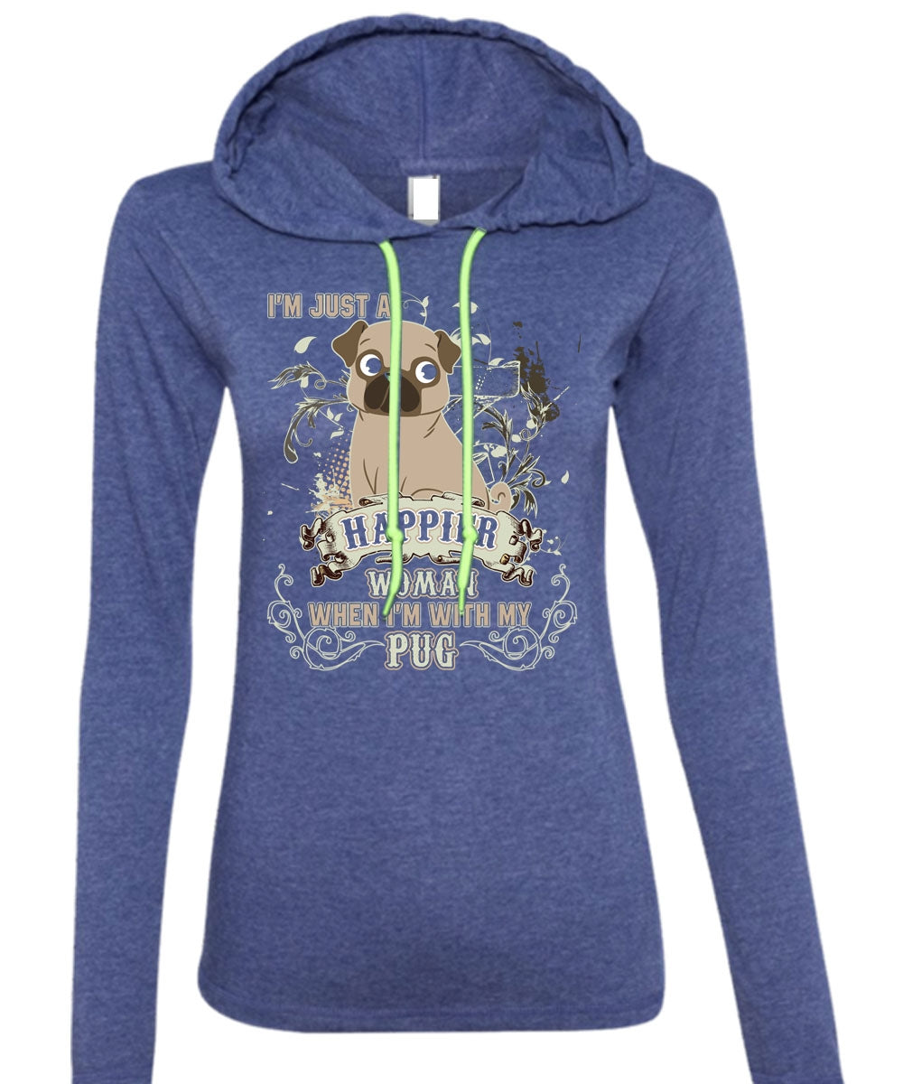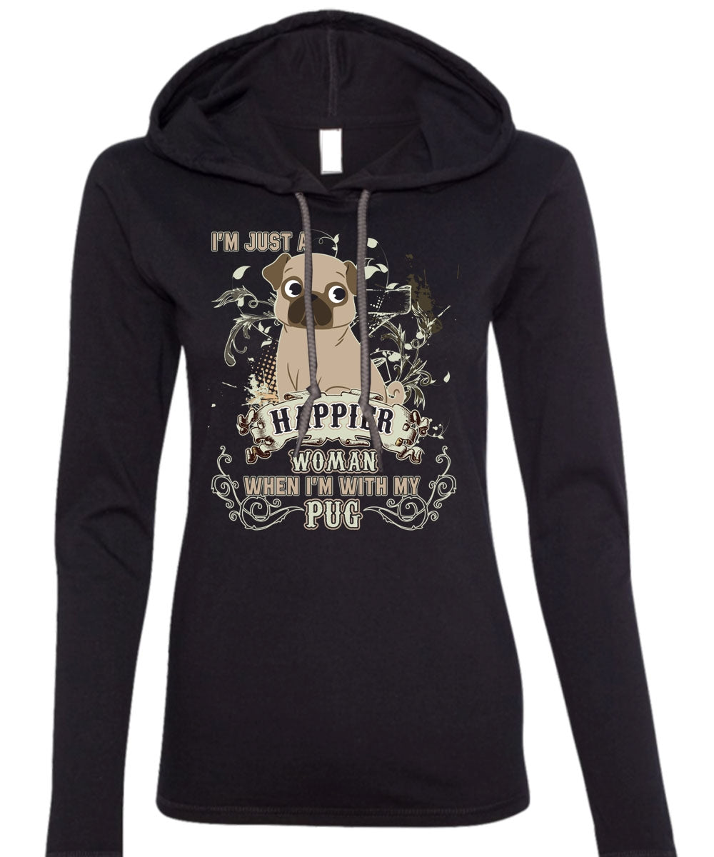 I'm With My Pug T Shirt, I'm Just A Happier Woman T Shirt (Anvil Ladies Ringspun Hooded)