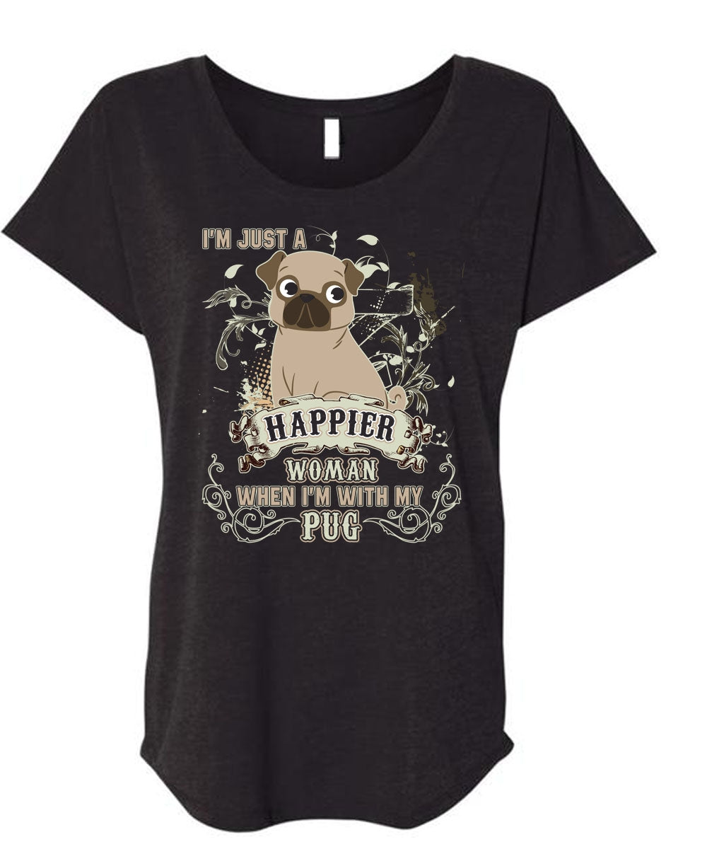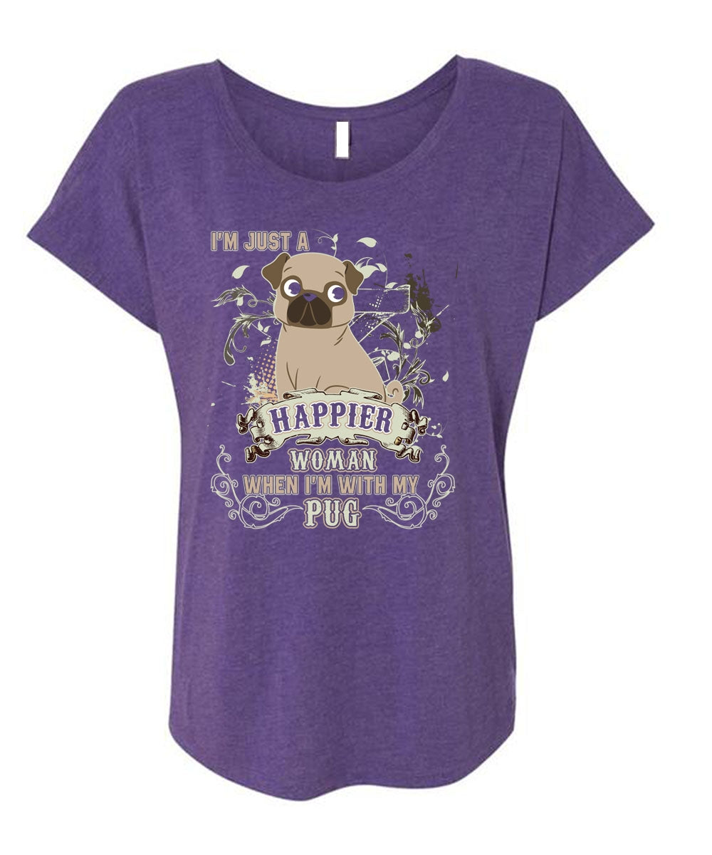 I'm With My Pug T Shirt, I'm Just A Happier Woman T Shirt, Cool Shirt (Ladies' Triblend Dolman Sleeve)