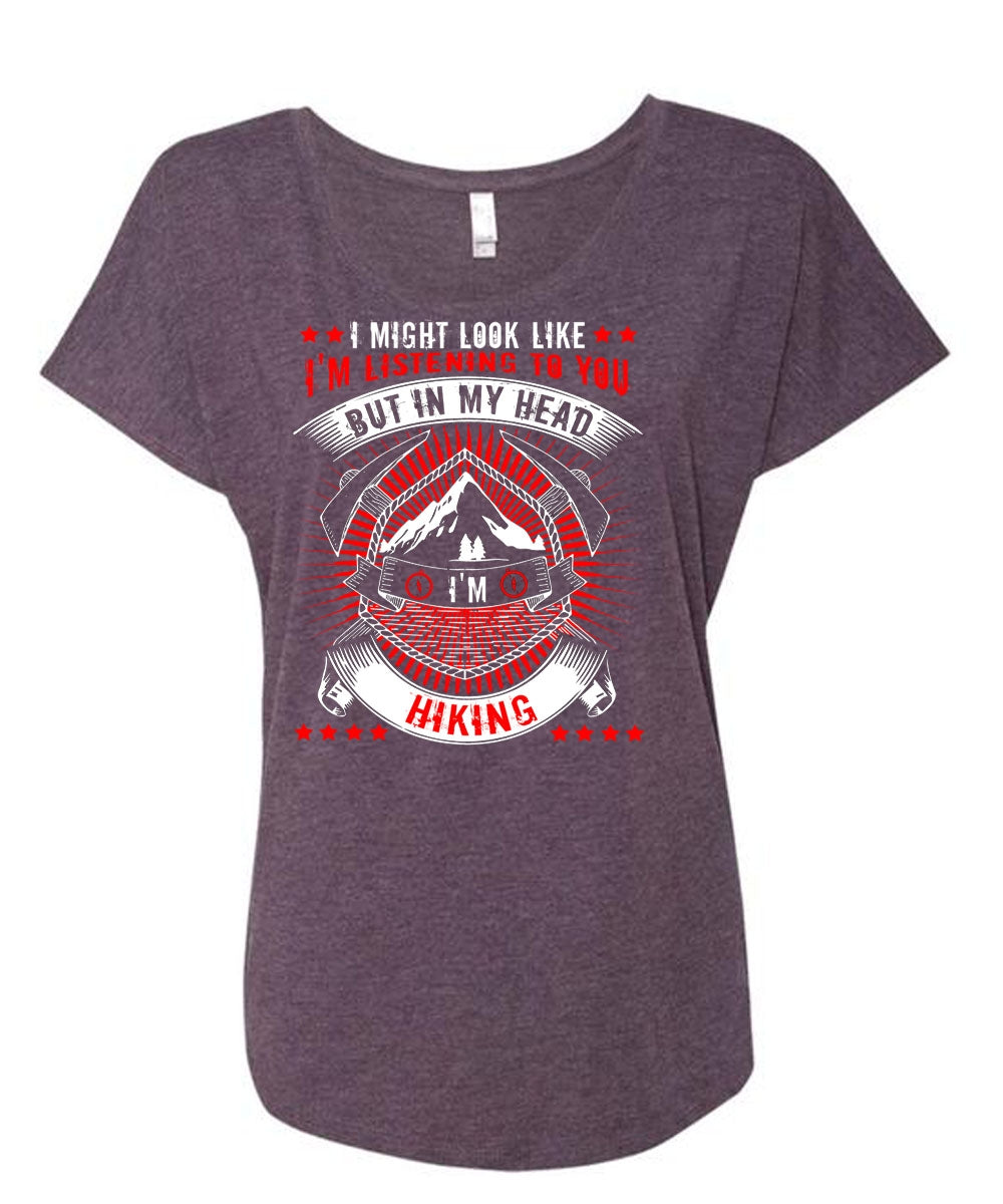 In My Head I'm Hiking T Shirt, Being A Hiker T Shirt, Cool Shirt (Ladies' Triblend Dolman Sleeve)