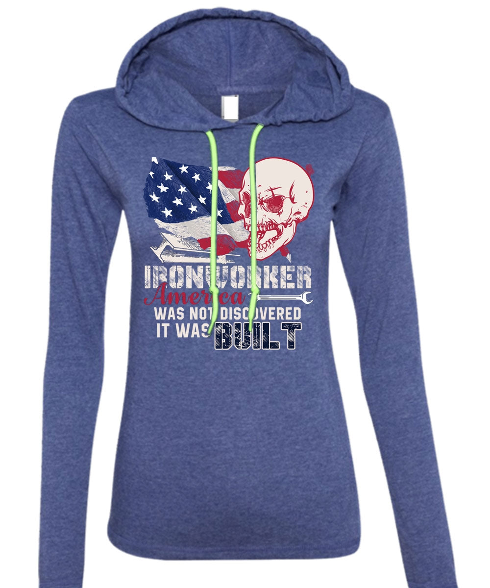 Ironworker America T Shirt, It Was Built T Shirt (Anvil Ladies Ringspun Hooded)