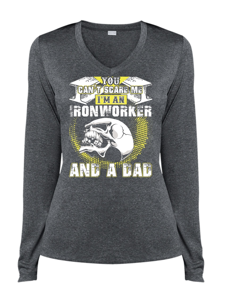Ironworker And A Dad T Shirt, You Can't Scare Me T Shirt, Cool Shirt (Ladies LS Heather V-Neck)
