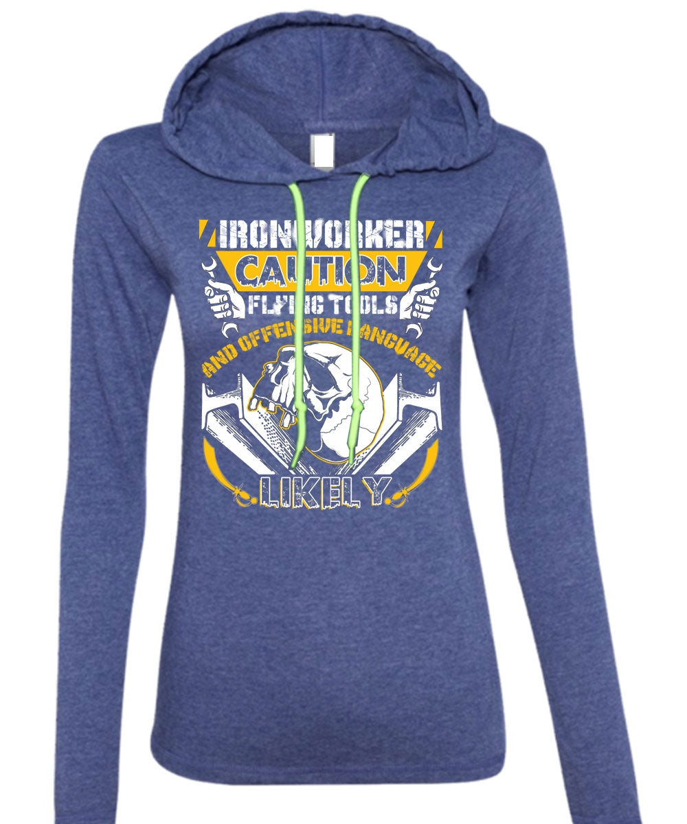 Ironworker Caution Flying Tools T Shirt, Being An Ironworker T Shirt (Anvil Ladies Ringspun Hooded)