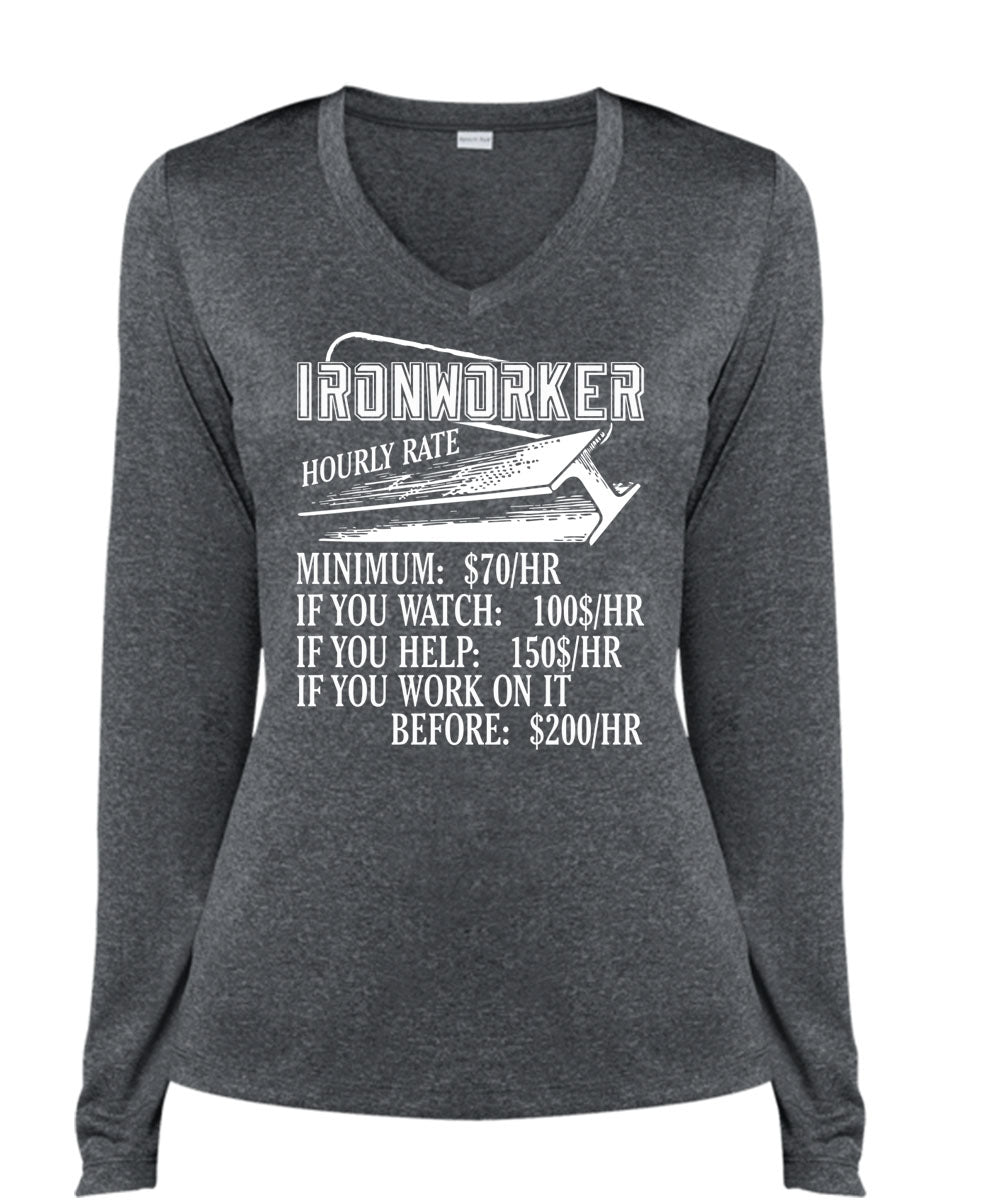 Ironworker Hourly Rate T Shirt, Being An Ironworker T Shirt, Cool Shirt (Ladies LS Heather V-Neck)