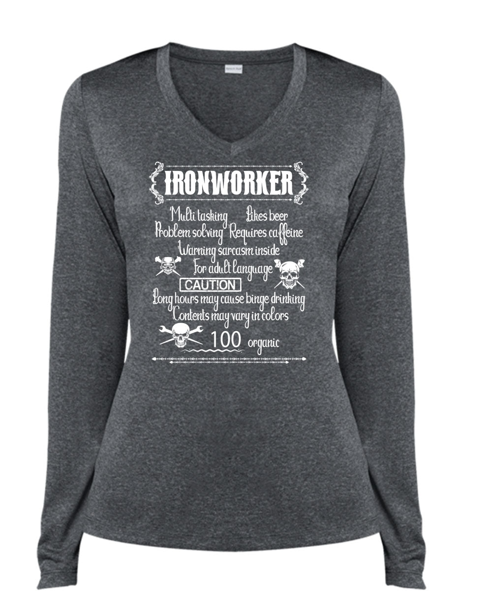 Ironworker Multitasking T Shirt, Likes Beer T Shirt, Cool Shirt (Ladies LS Heather V-Neck)