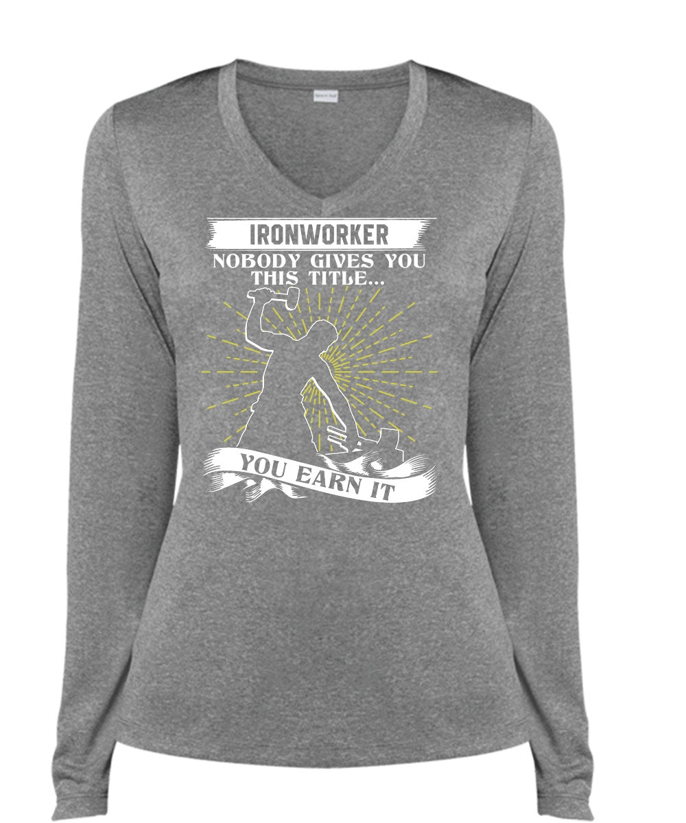 Ironworker Nobody Gives T Shirt, Being An Ironworker T Shirt, Cool Shirt (Ladies LS Heather V-Neck)