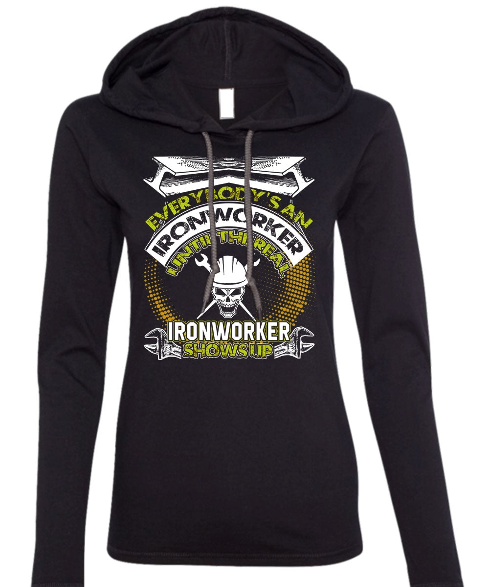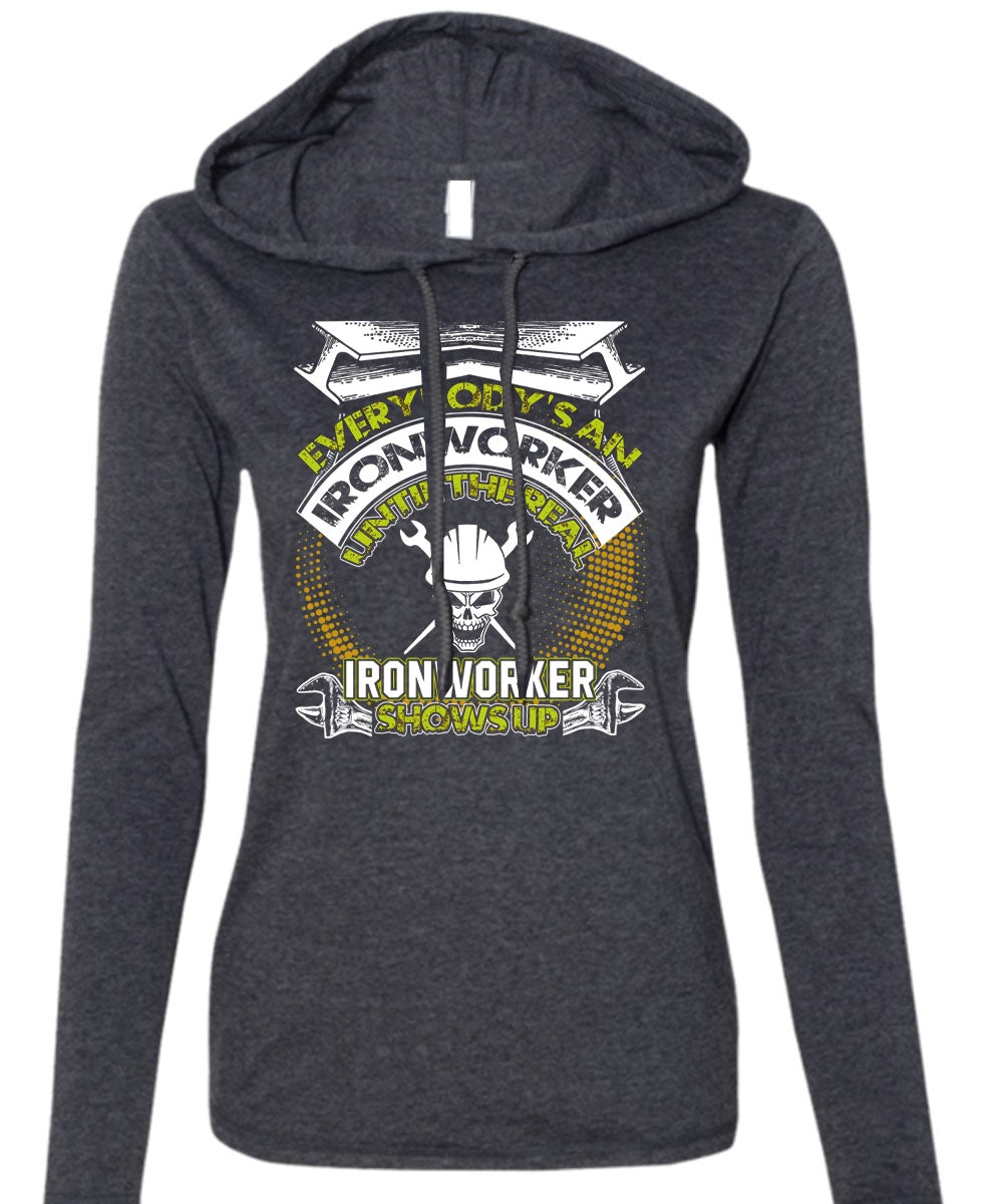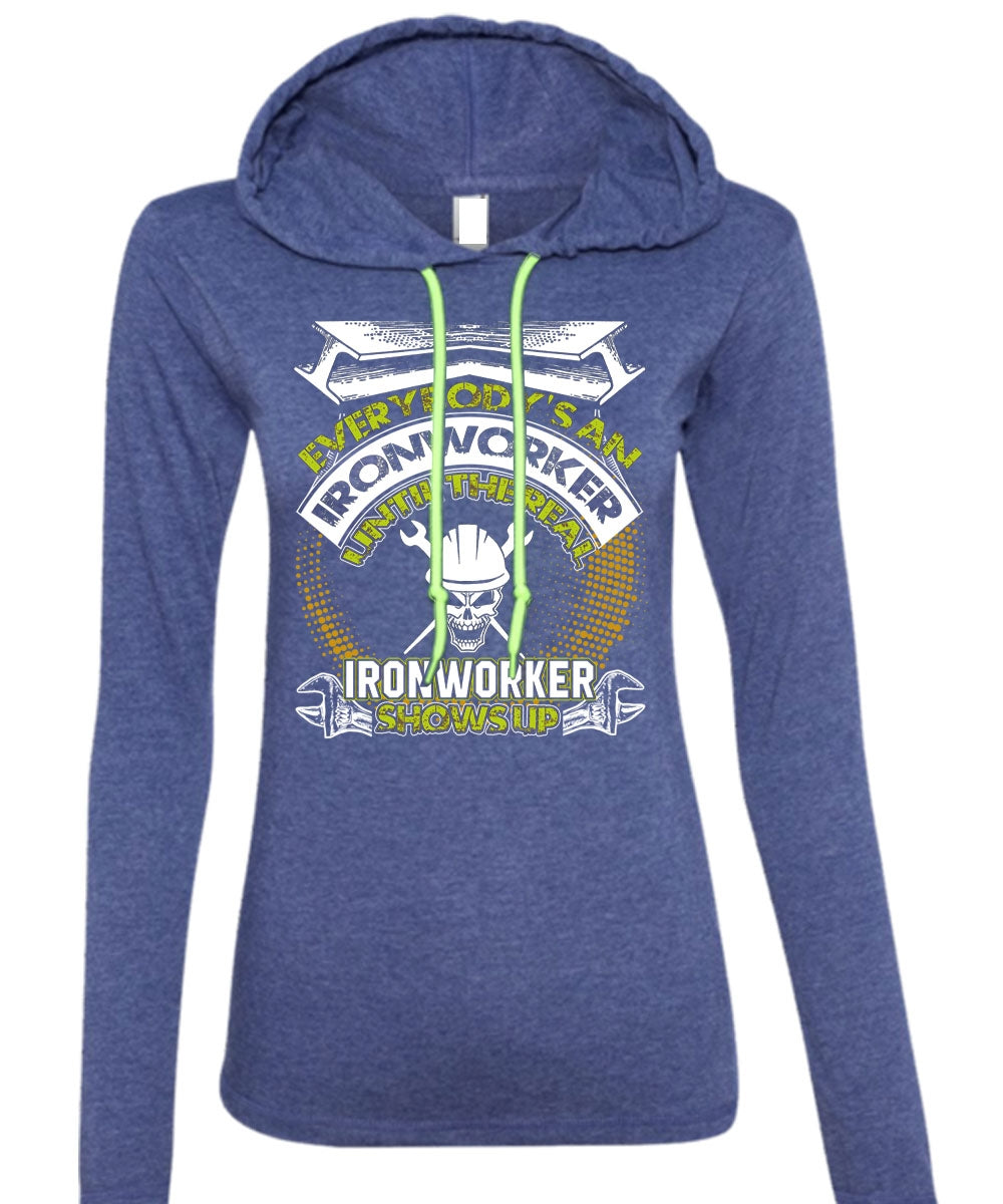 Ironworker Shows Up T Shirt, I Love Ironworker T Shirt (Anvil Ladies Ringspun Hooded)