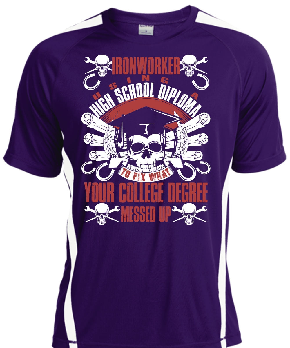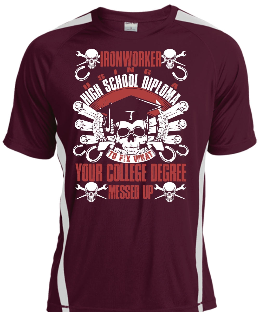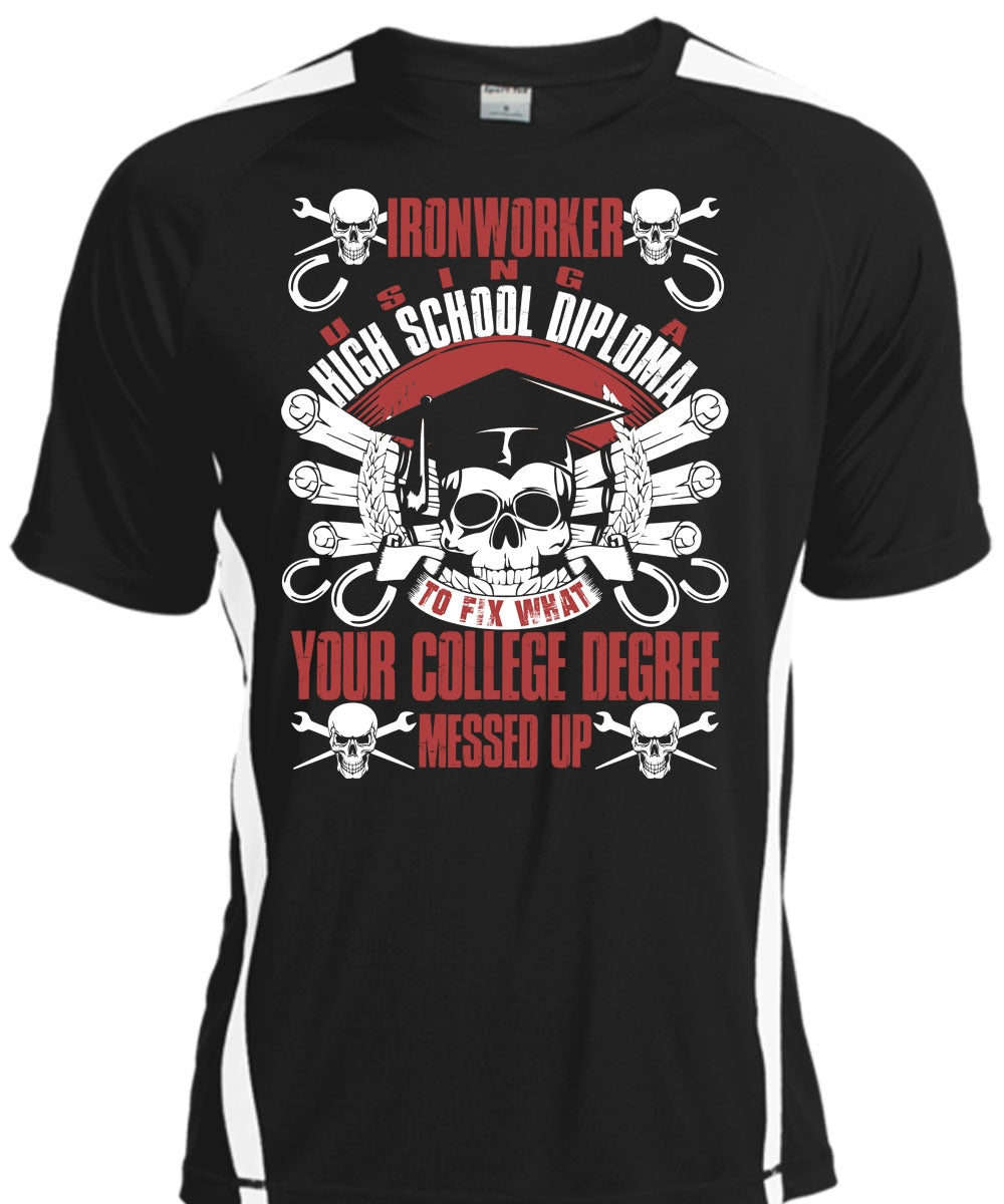Ironworker Using A High School T Shirt, College Degree T Shirt, Cool Shirt