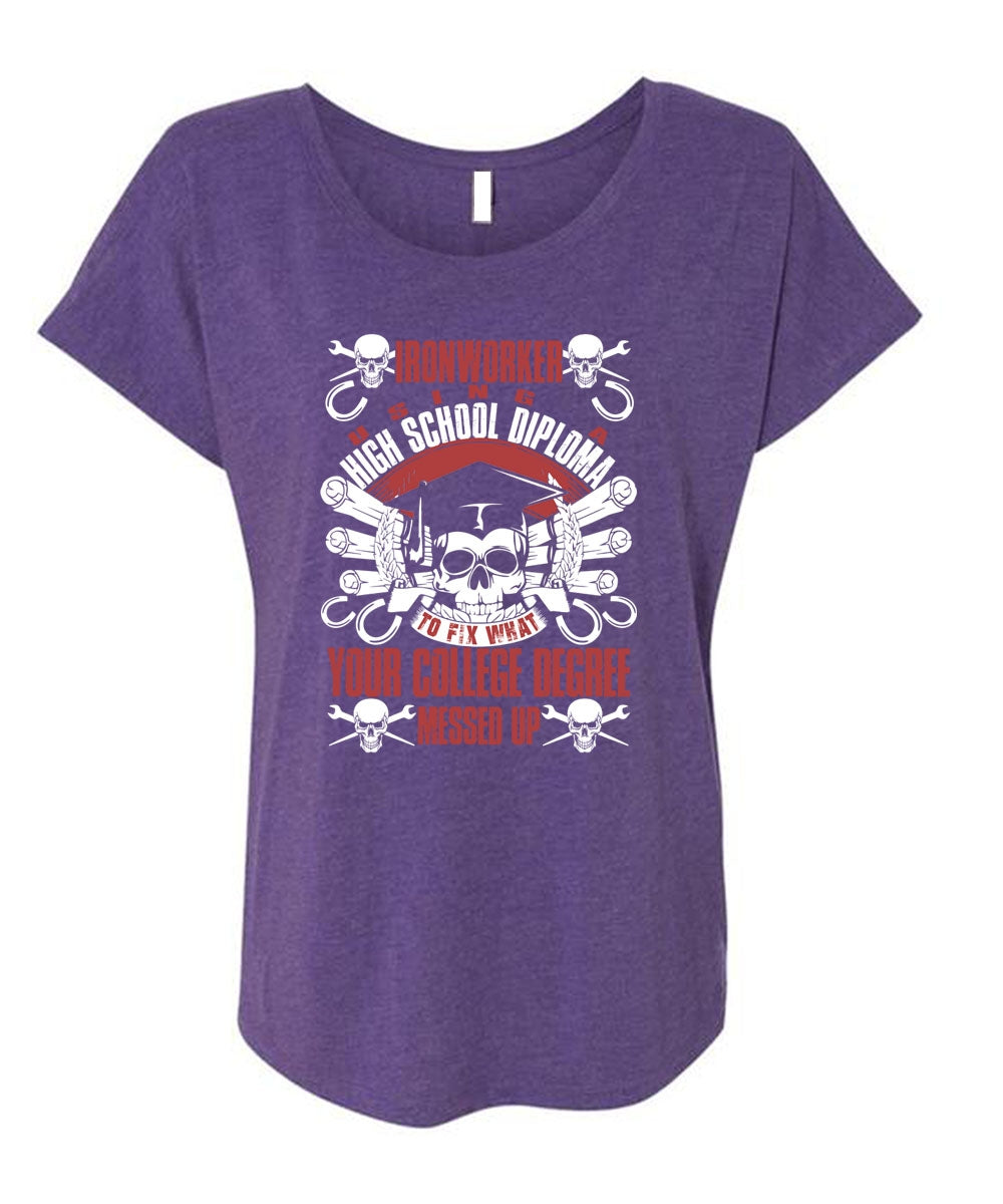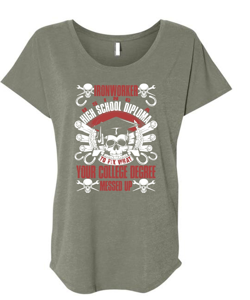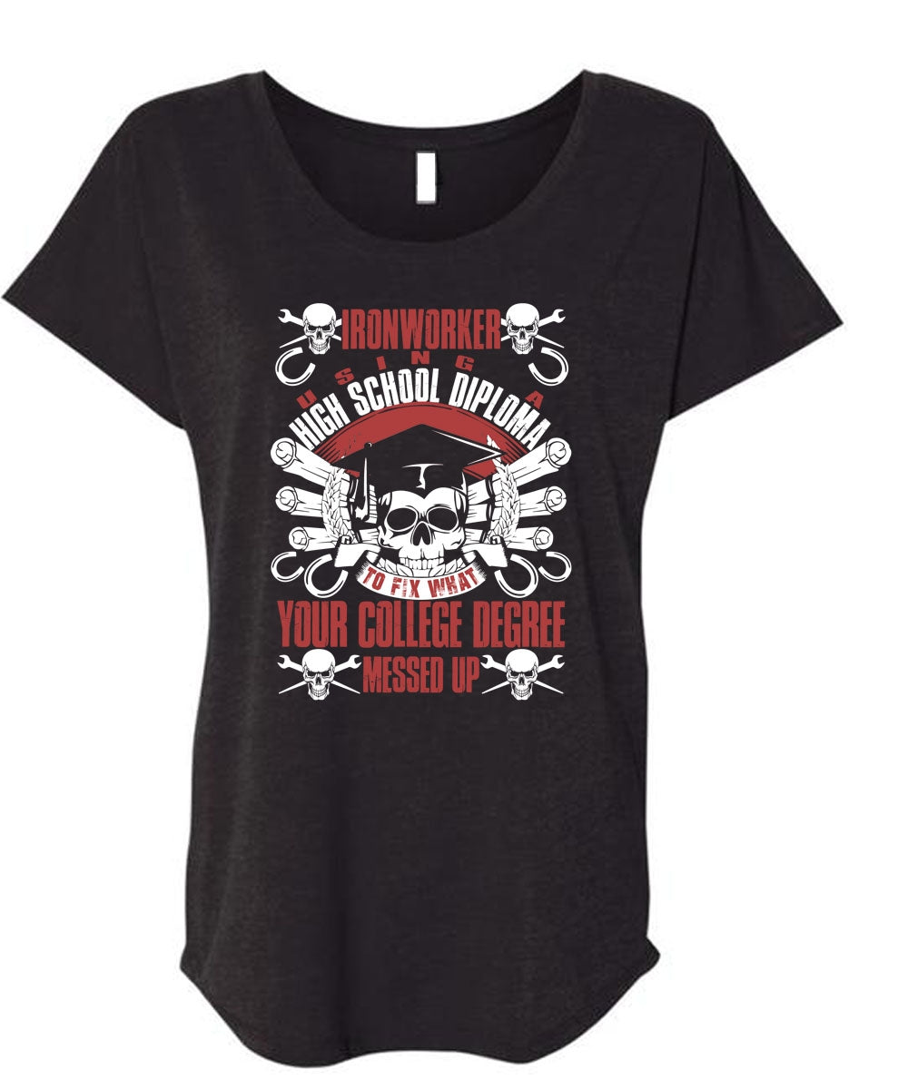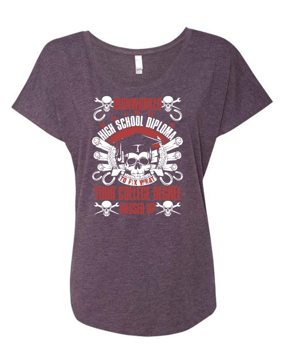 Ironworker Using A High School T Shirt, College Degree T Shirt, Cool Shirt (Ladies' Triblend Dolman Sleeve)