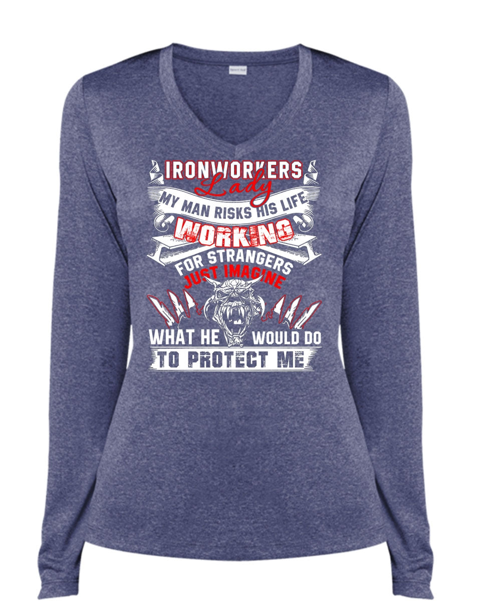 Ironworkers Lady T Shirt, I Love Ironworker T Shirt, Cool Shirt (Ladies LS Heather V-Neck)