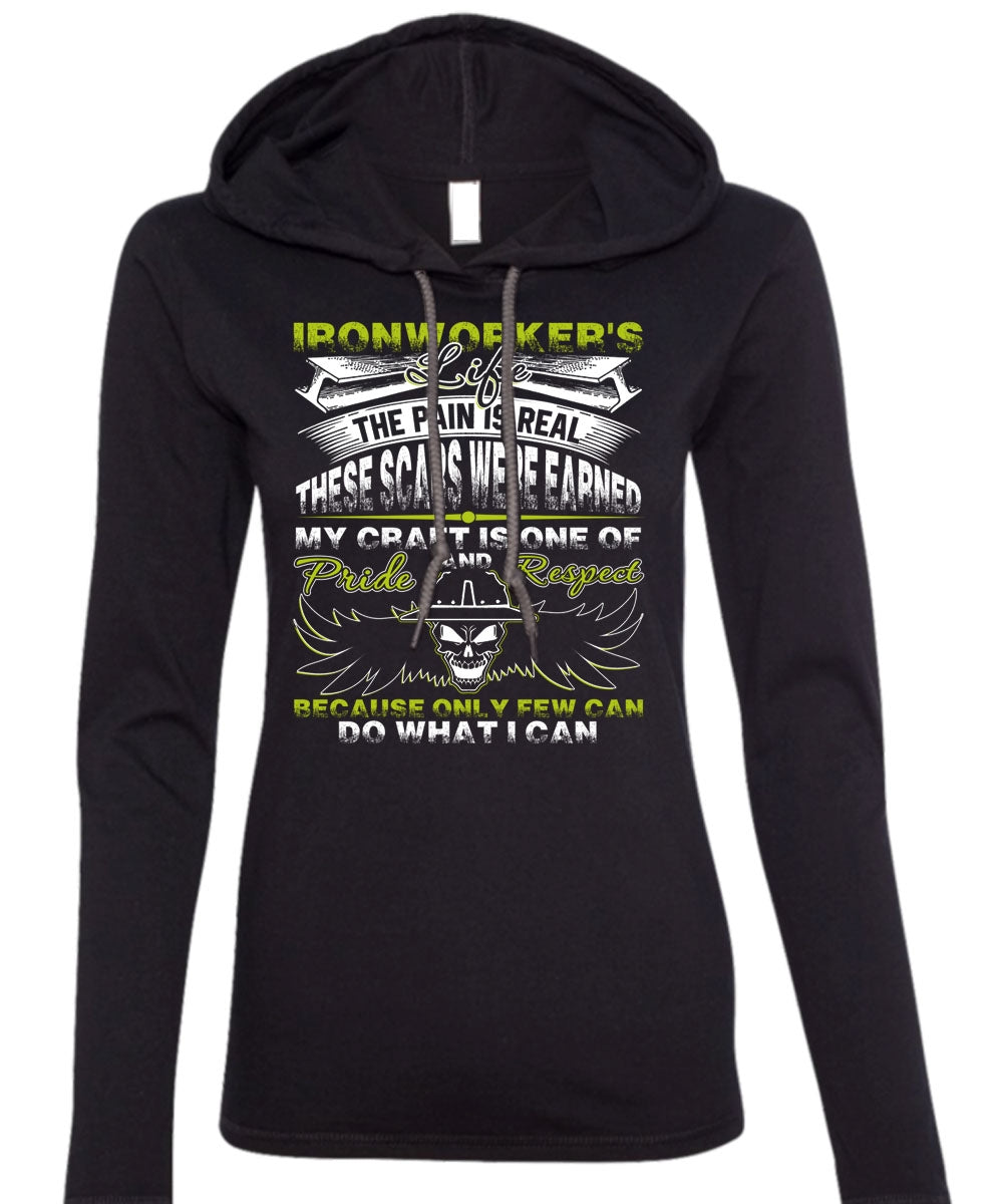 Ironworker's Life T Shirt, The Pain Is Real T Shirt (Anvil Ladies Ringspun Hooded)