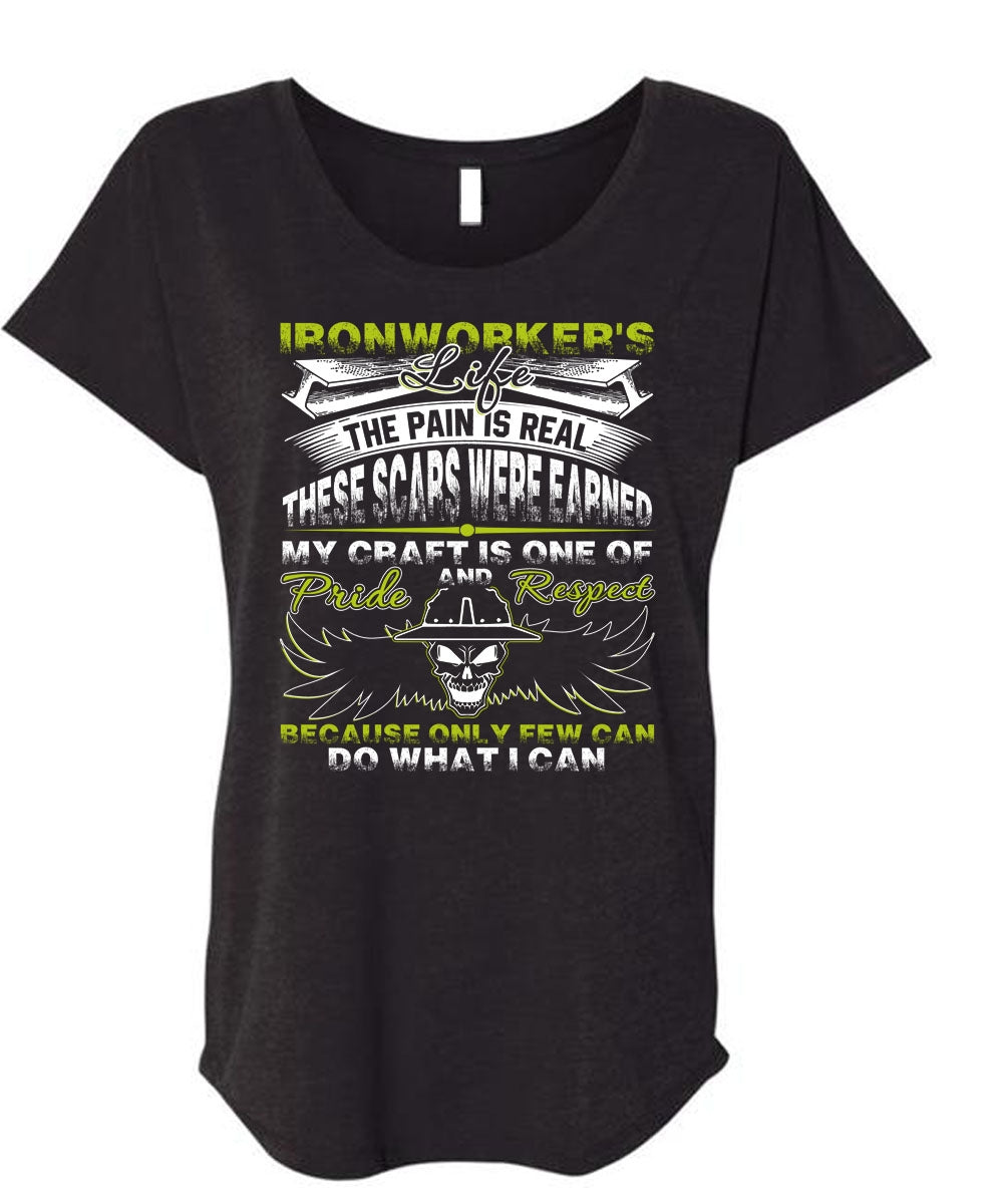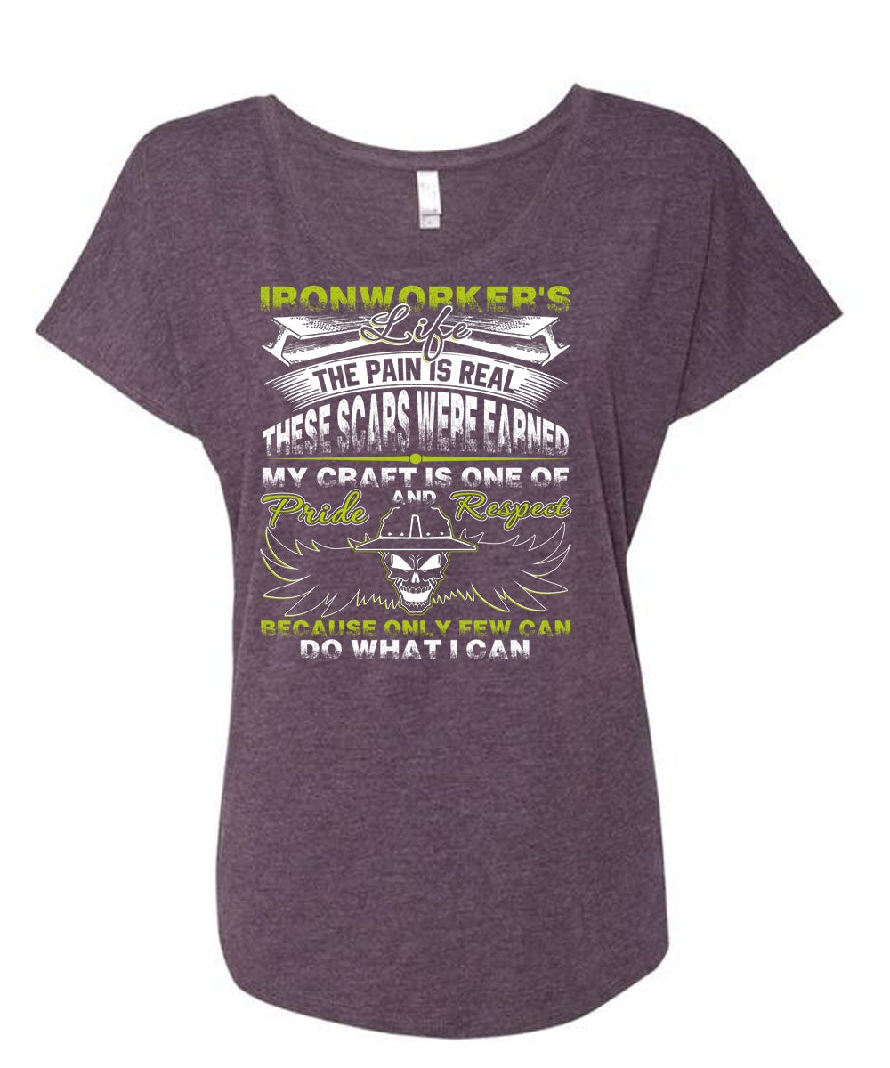Ironworker's Life T Shirt, The Pain Is Real T Shirt, Cool Shirt (Ladies' Triblend Dolman Sleeve)