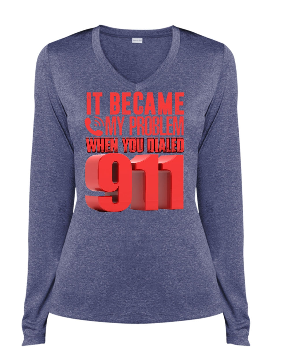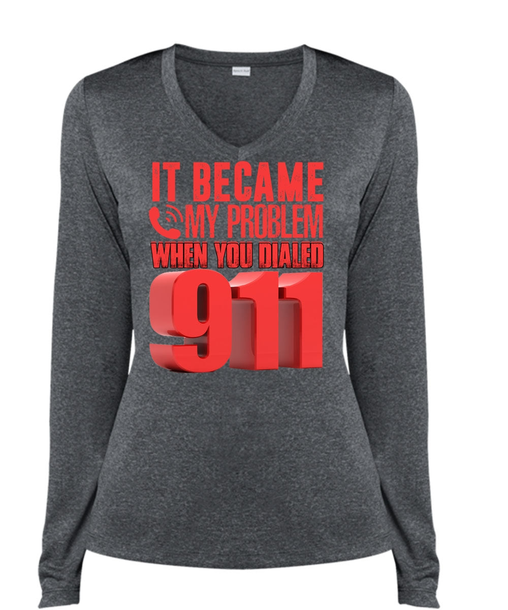 It Became My Problem T Shirt, Being A Police T Shirt, Cool Shirt (Ladies LS Heather V-Neck)