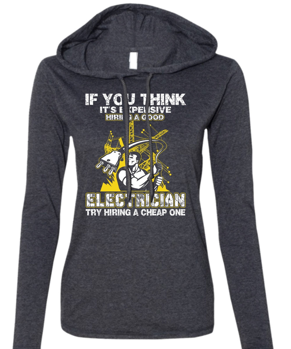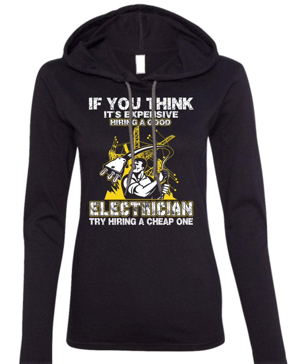 It's Expensive Hiring A Good Electrician T Shirt, Being An Electrician T Shirt (Anvil Ladies Ringspun Hooded)