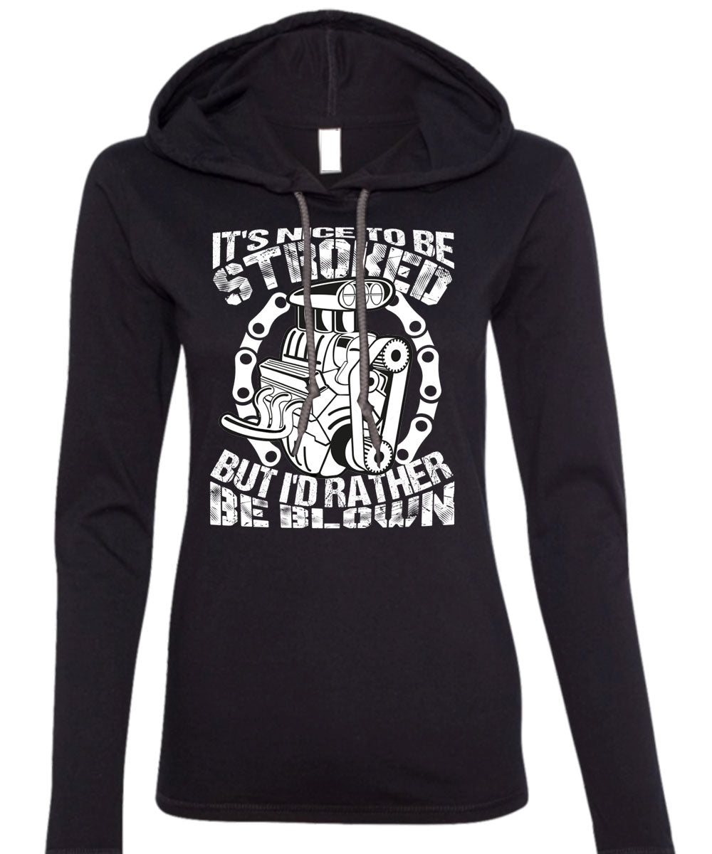 It's Nice To Be Stroked T Shirt, Being A Mechanic T Shirt (Anvil Ladies Ringspun Hooded)