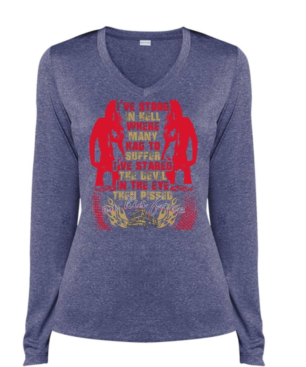 I've Started The Devil T Shirt, I've Stood In Hell T Shirt, Cool Shirt (Ladies LS Heather V-Neck)
