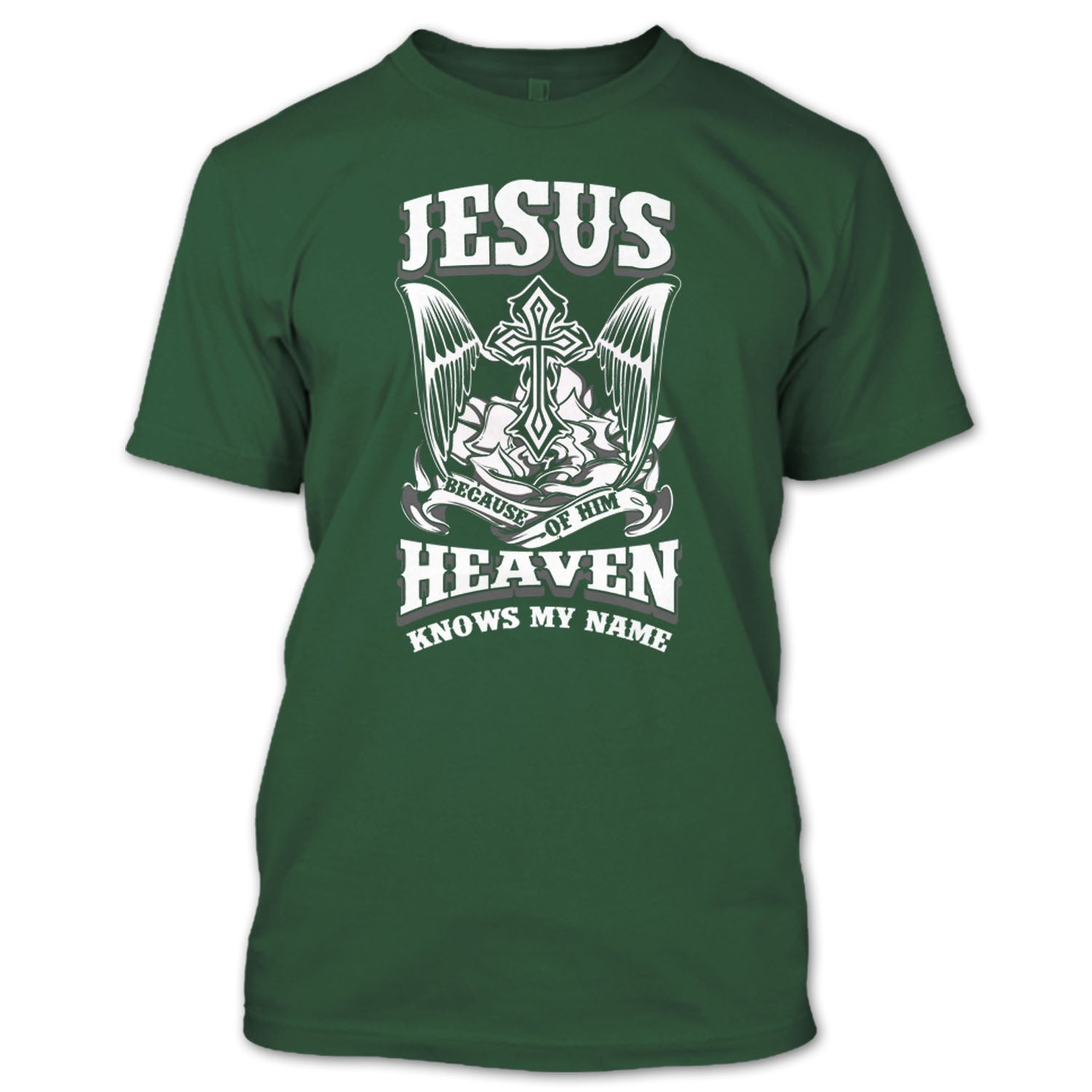 Jesus Because Of Him T Shirt, Heaven Knows My Name T Shirt