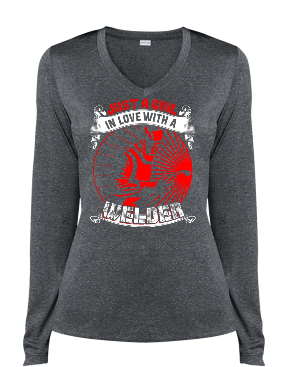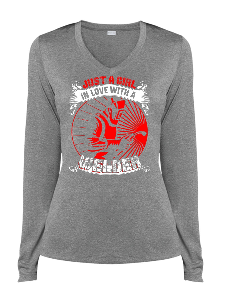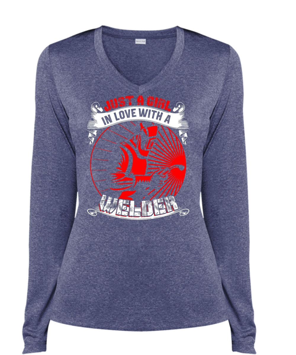 Just A Girl In Love With A Welder T Shirt, Being A Welder T Shirt, Cool Shirt (Ladies LS Heather V-Neck)