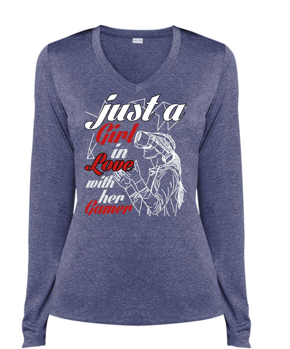 Just A Girl In Love With Her Gamer T Shirt, Being A Gamer T Shirt, Cool Shirt (Ladies LS Heather V-Neck)