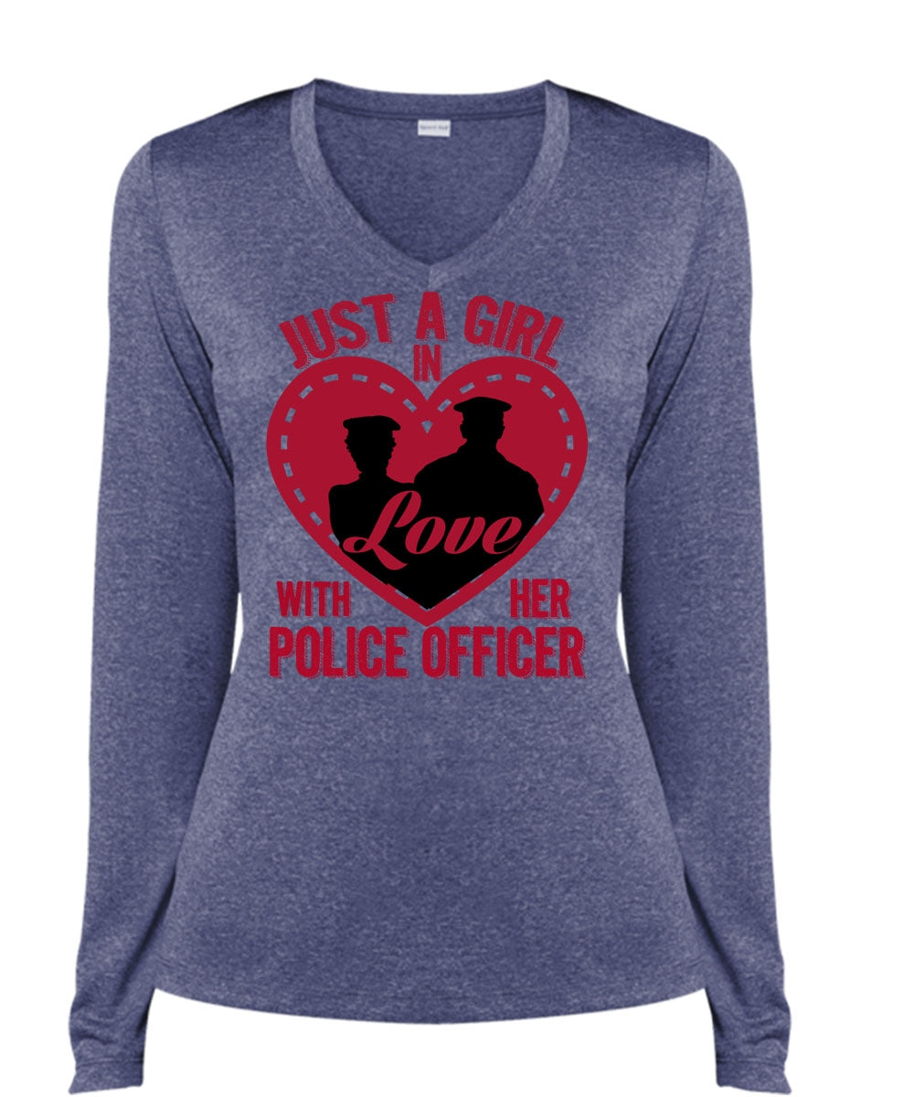 Just A Girl In Love With Her Police Officer T Shirt, Being A Police T Shirt, Cool Shirt (Ladies LS Heather V-Neck)