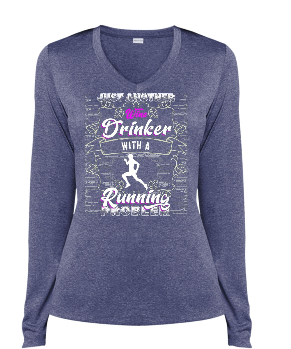Just Another Wine Drinker T Shirt, Running Problem T Shirt, Cool Shirt (Ladies LS Heather V-Neck)