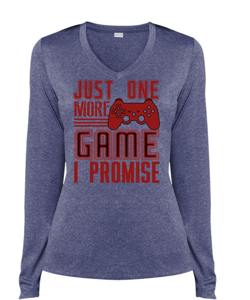 Just One More Game T Shirt, Being A Gamer T Shirt, Cool Shirt (Ladies LS Heather V-Neck)