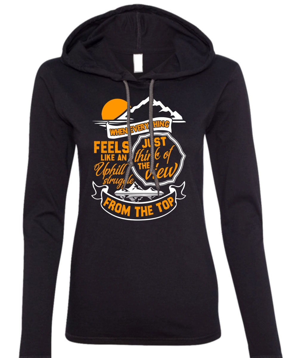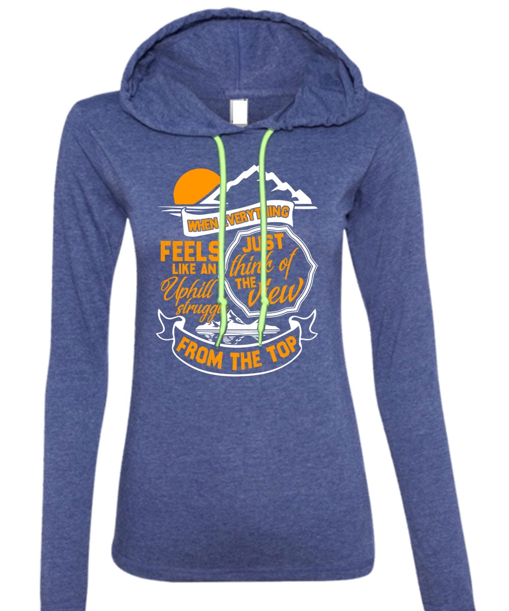 Just Think Of The View T Shirt, Being A Hiker T Shirt (Anvil Ladies Ringspun Hooded)
