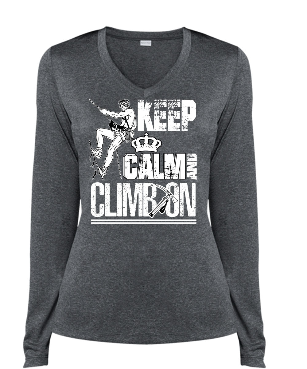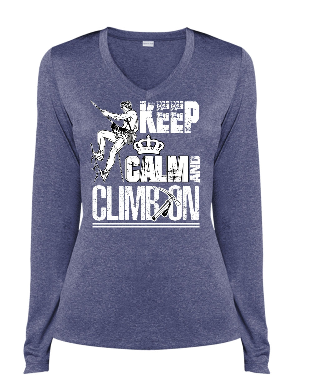 Keep Calm And Climb On T Shirt, Being A Hiker T Shirt, Cool Shirt (Ladies LS Heather V-Neck)