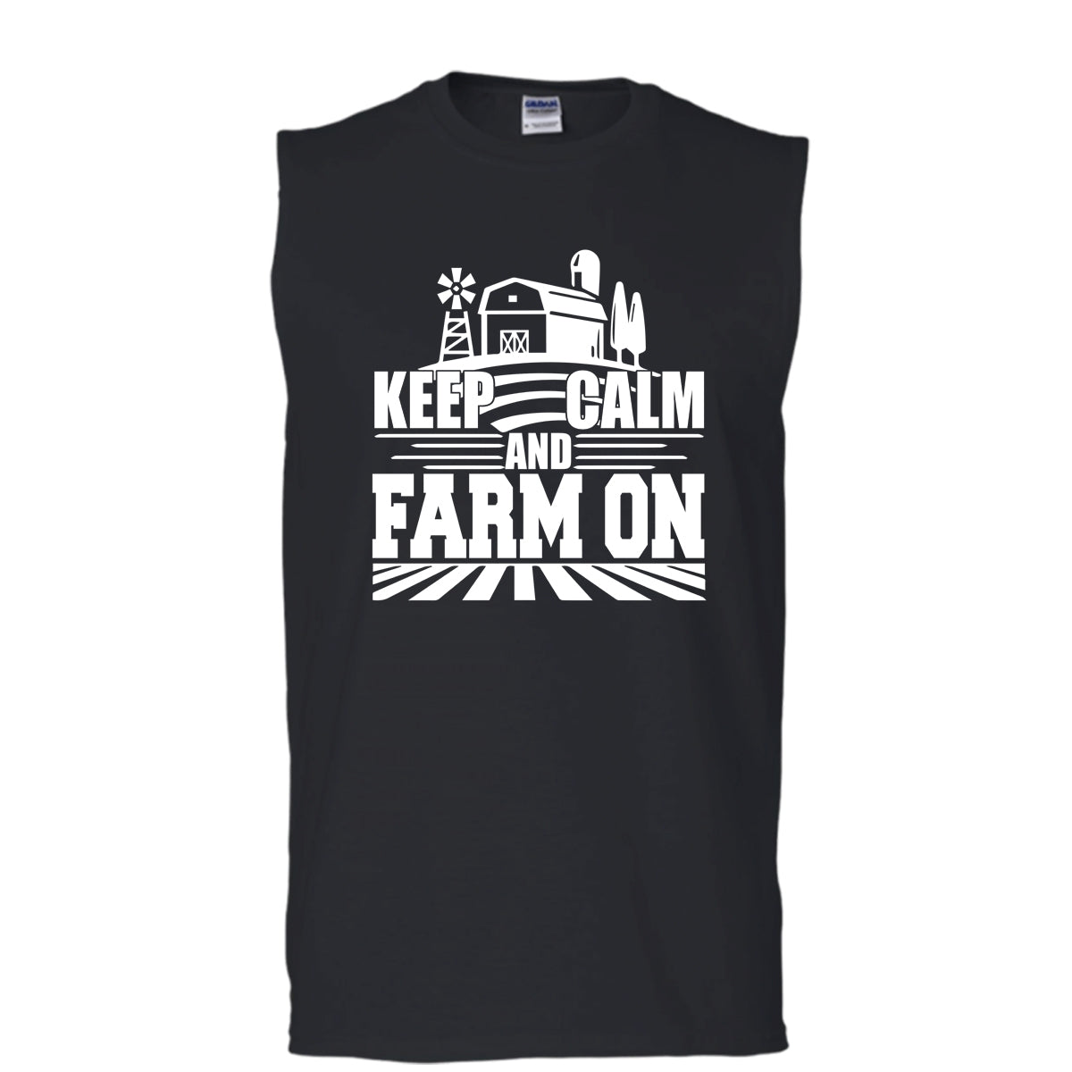 Keep Calm And Farm On T Shirt, Coolest Farmer T Shirt, Cool T Shirt (Men's Cotton Sleeveless)