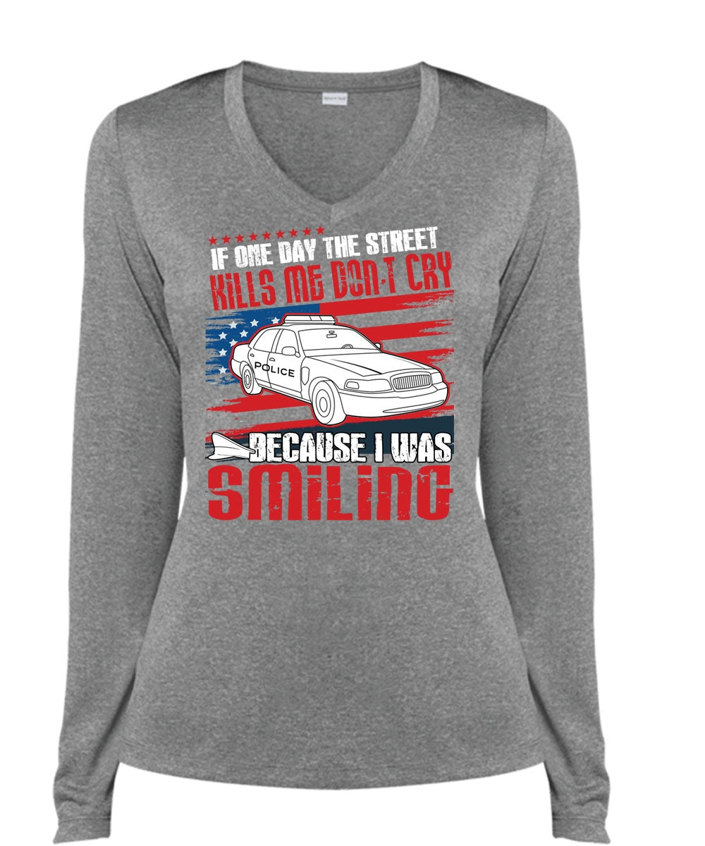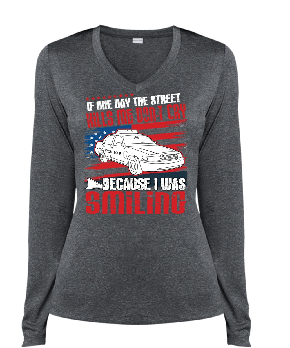 Kills Me Don't Cry T Shirt, I Was Smiling T Shirt, Cool Shirt (Ladies LS Heather V-Neck)