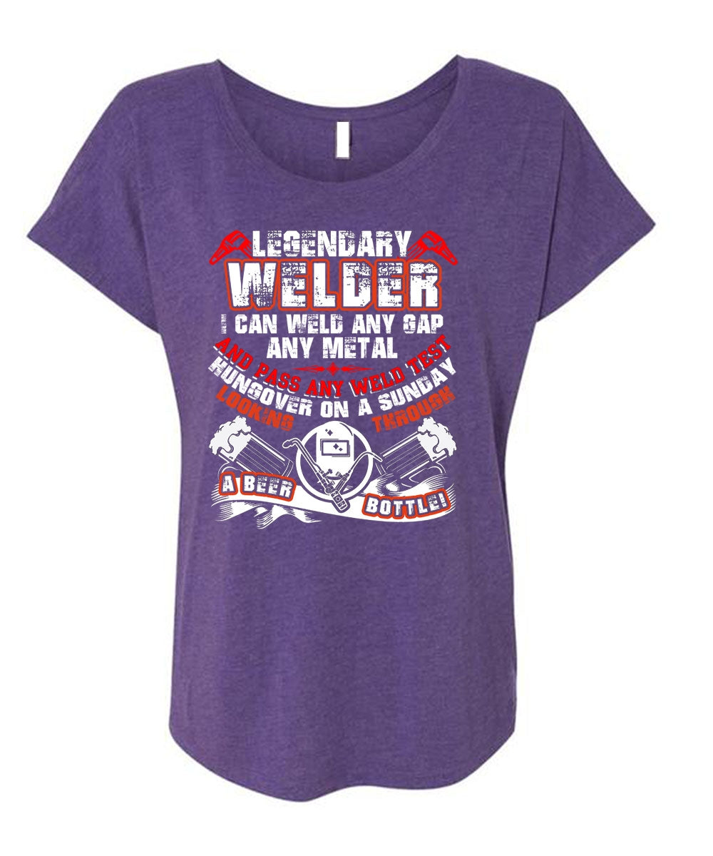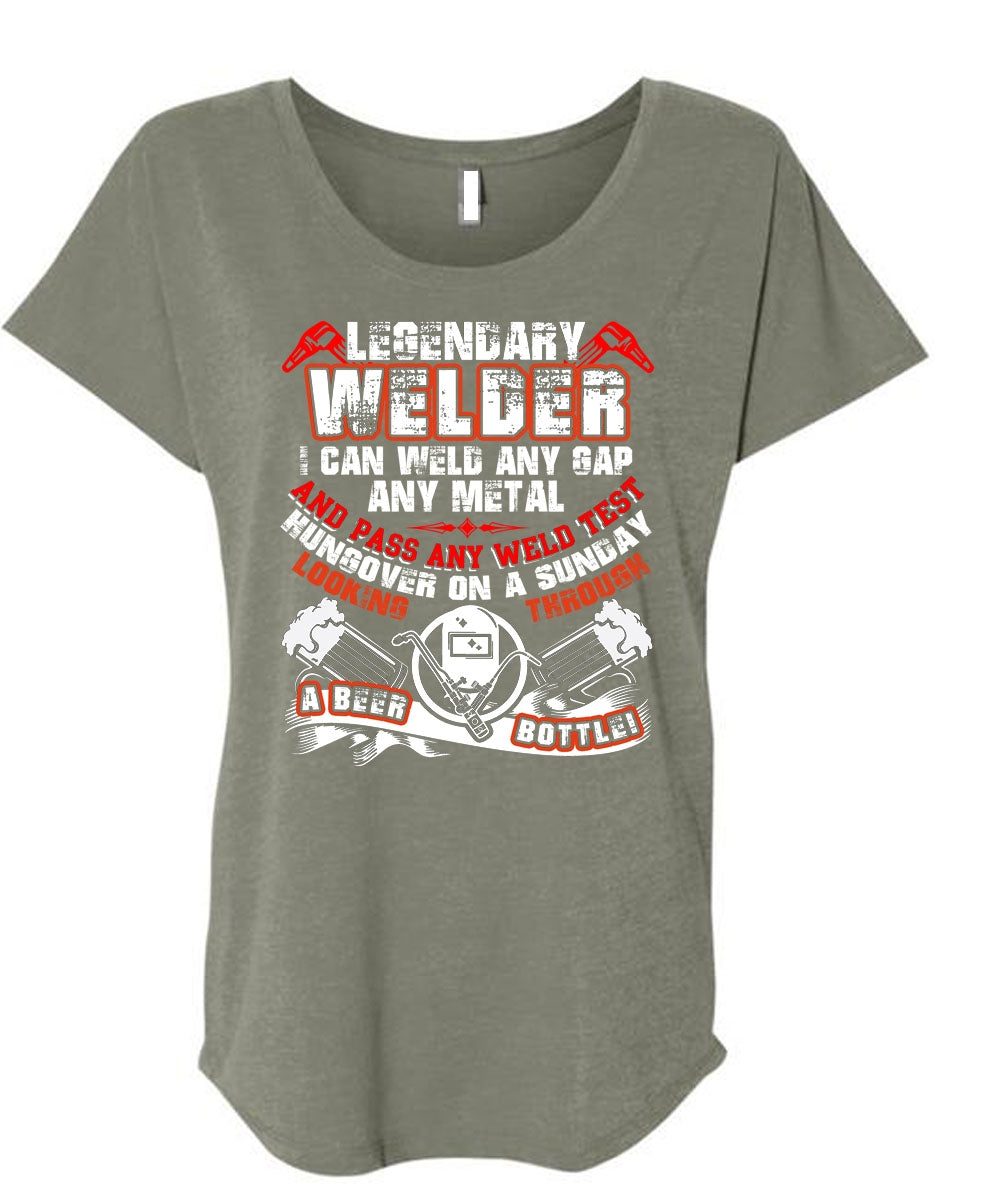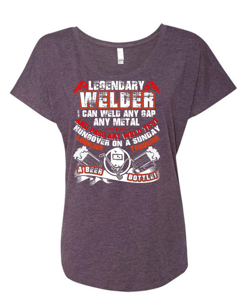 Legendary Welder T Shirt, Pass Any Weld Test T Shirt, Cool Shirt (Ladies' Triblend Dolman Sleeve)
