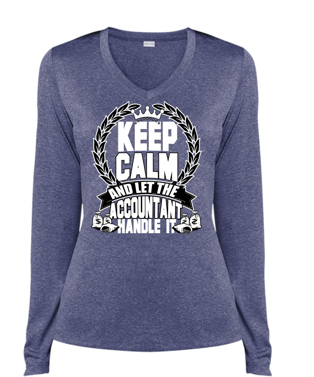 Let The Accountant Handle It T Shirt, Being An Accountant T Shirt, Cool Shirt (Ladies LS Heather V-Neck)