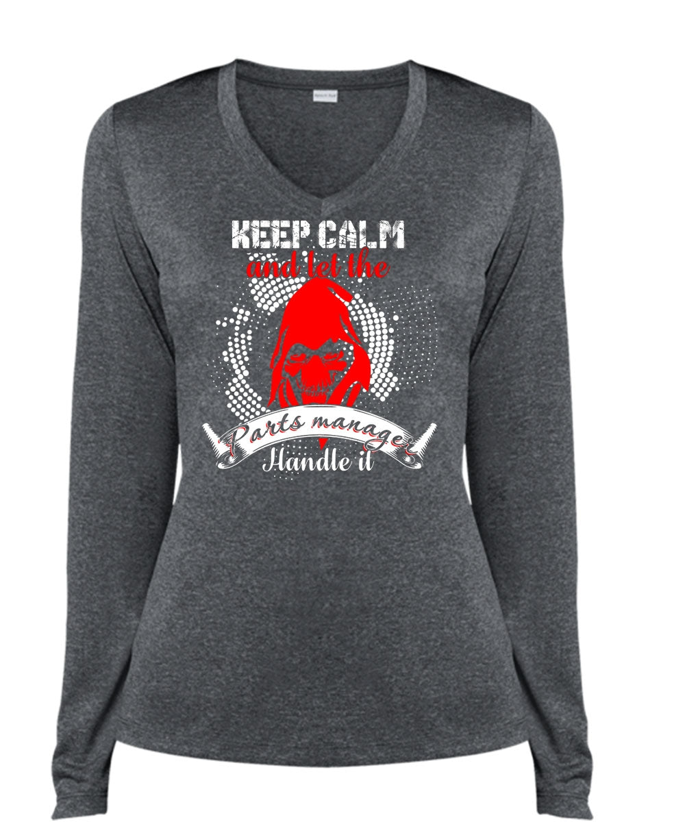 Let The Parts Manager Handle It T Shirt, Being A Manager T Shirt, Cool Shirt (Ladies LS Heather V-Neck)