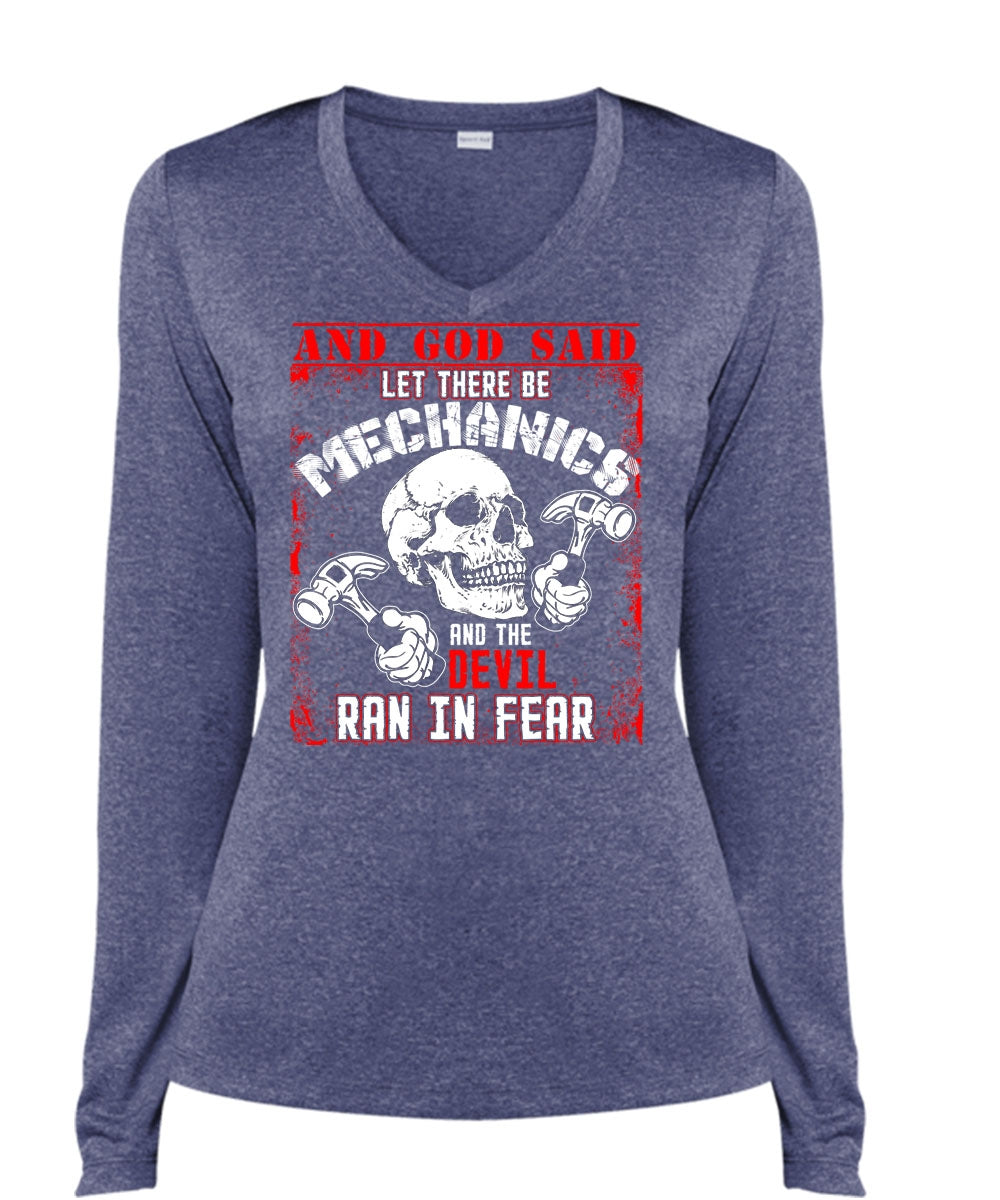 Let There Be Mechanics T Shirt, Being A Mechanic T Shirt, Cool Shirt (Ladies LS Heather V-Neck)