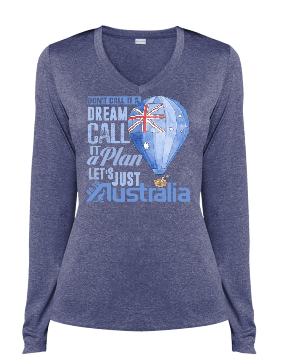 Let's Just Go To Australia T Shirt, It A Plan T Shirt, Cool Shirt (Ladies LS Heather V-Neck)