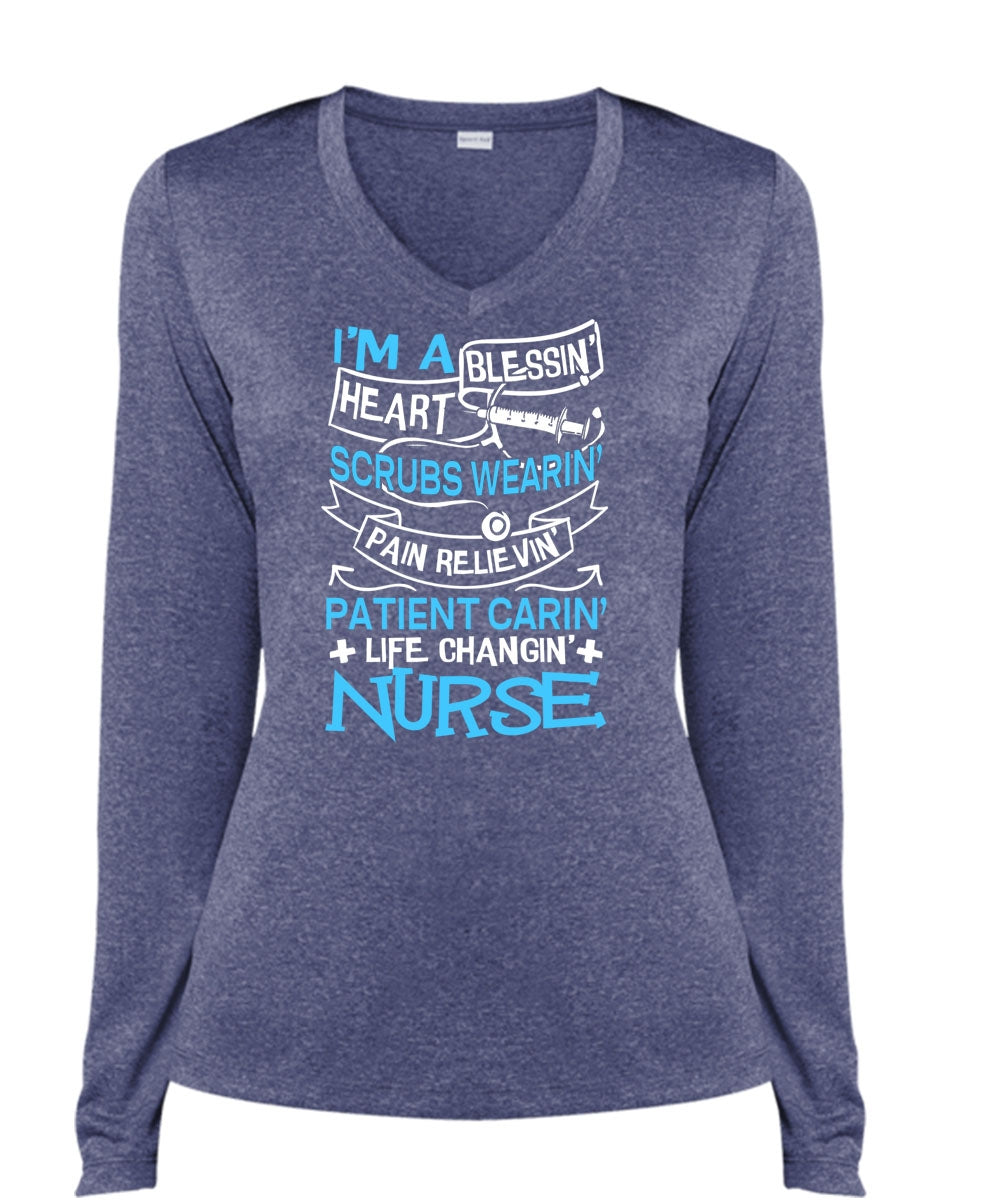 Life Changing Nurse T Shirt, I'm A Blessing Heart T Shirt, Cool Shirt (Ladies LS Heather V-Neck)