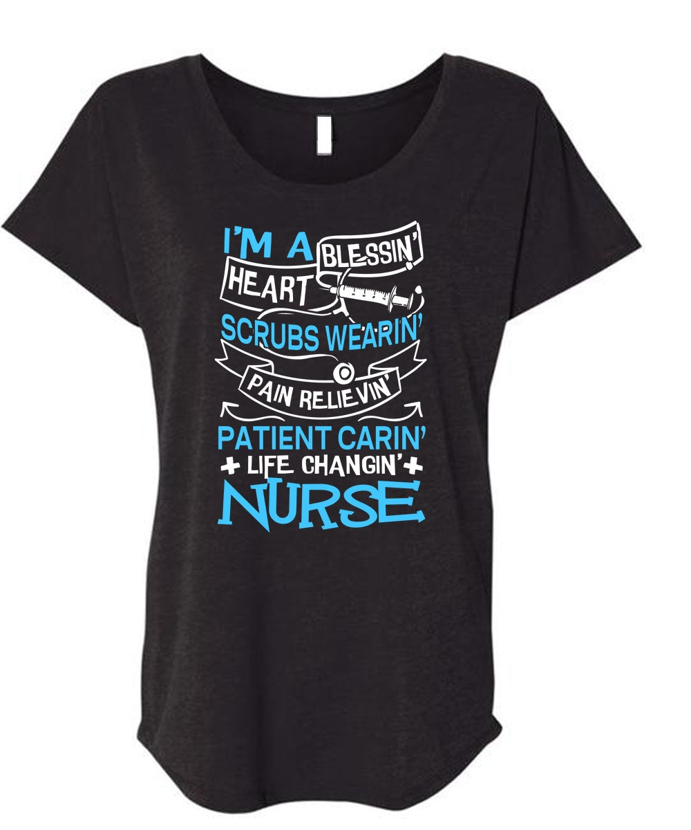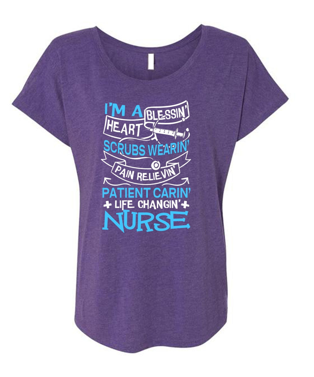 Life Changing Nurse T Shirt, I'm A Blessing Heart T Shirt, Cool Shirt (Ladies' Triblend Dolman Sleeve)