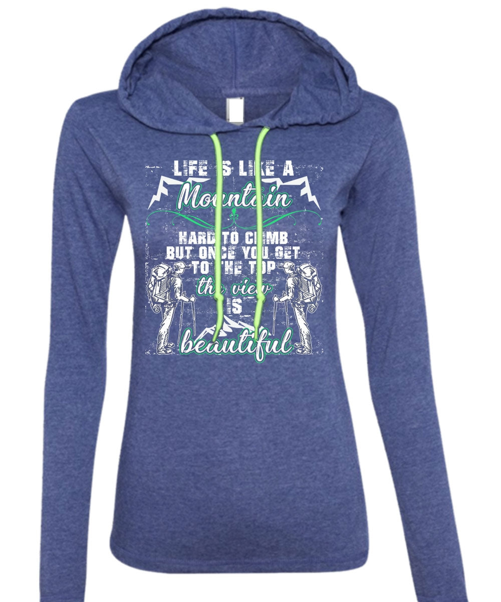 Life Is Like A Mountain T Shirt, The View Is Beautiful T Shirt (Anvil Ladies Ringspun Hooded)