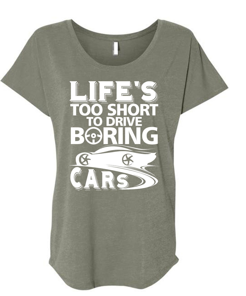 Life's Too Short To Drive Boring Cars T Shirt, Being A Driver T Shirt, Cool Shirt (Ladies' Triblend Dolman Sleeve)