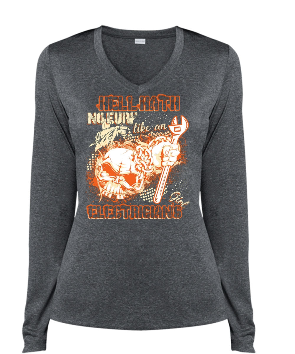 Like An Electrician's Girl T Shirt, Being An Electrician T Shirt, Cool Shirt (Ladies LS Heather V-Neck)