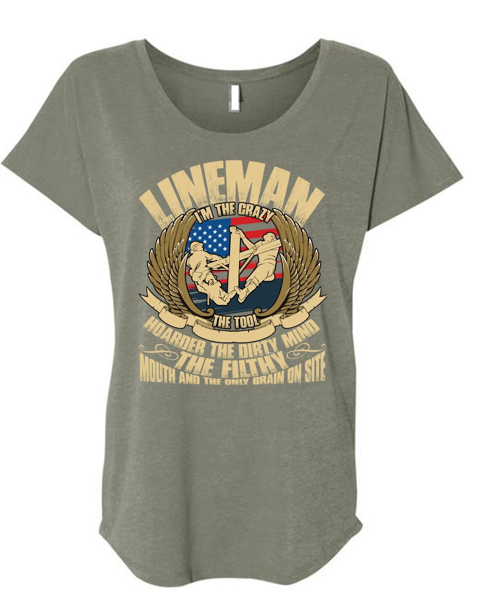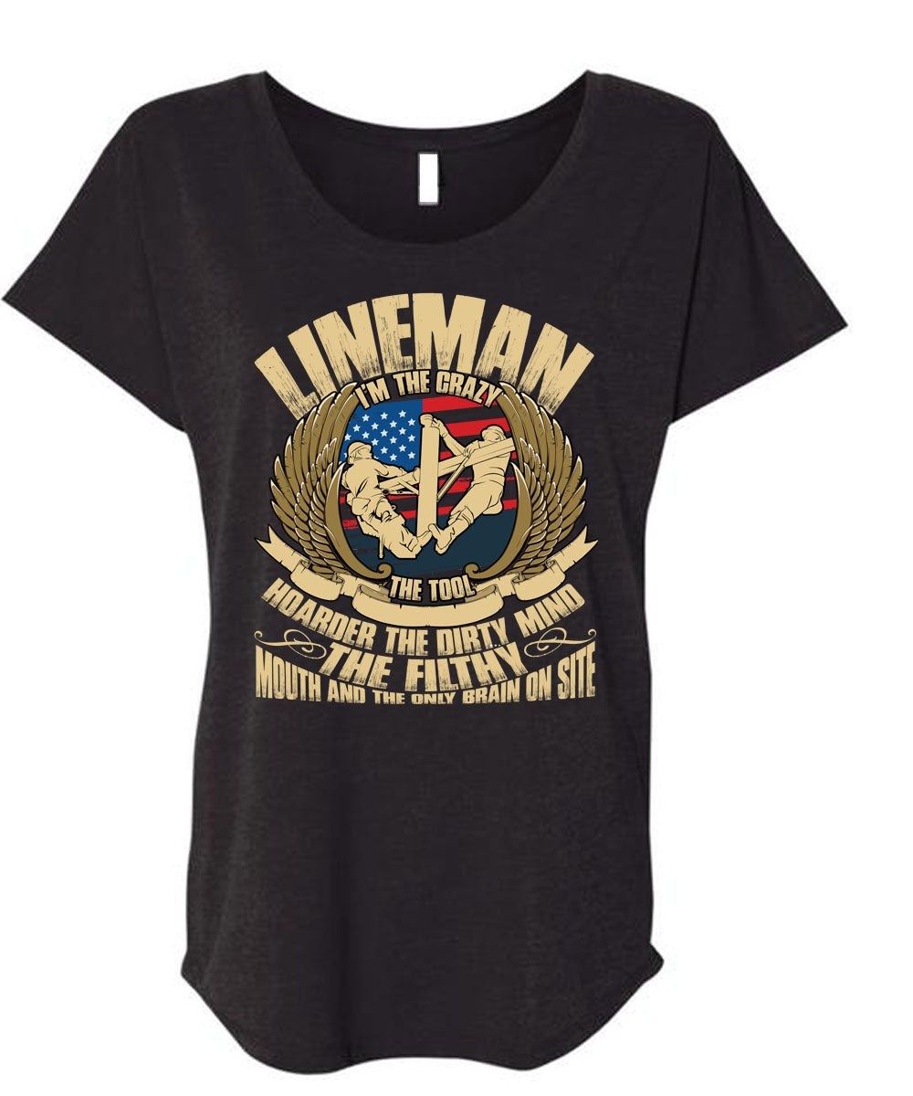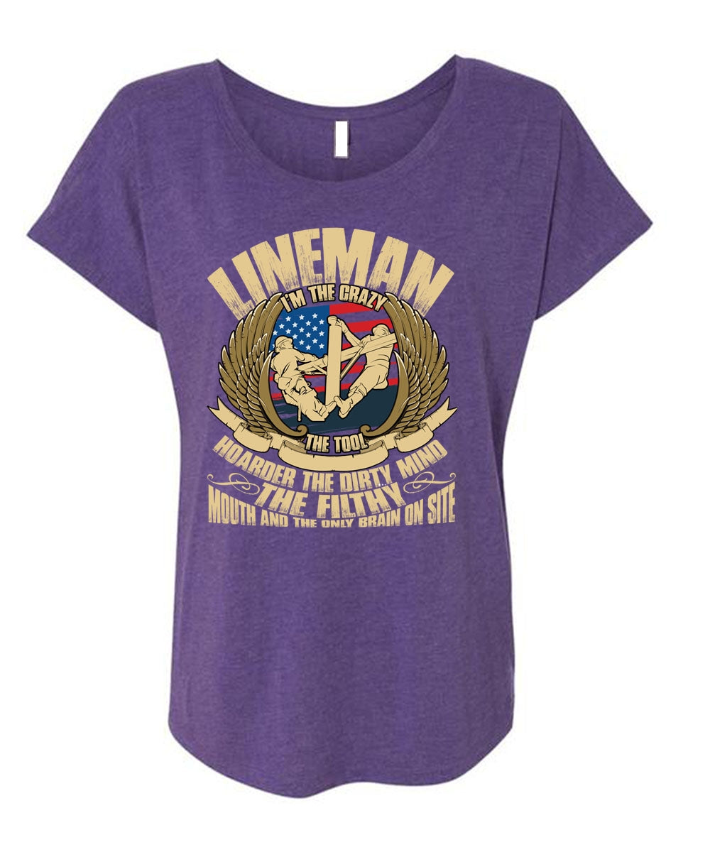 Lineman I'm The Crazy The Tools T Shirt, Being A Lineman T Shirt, Cool Shirt (Ladies' Triblend Dolman Sleeve)