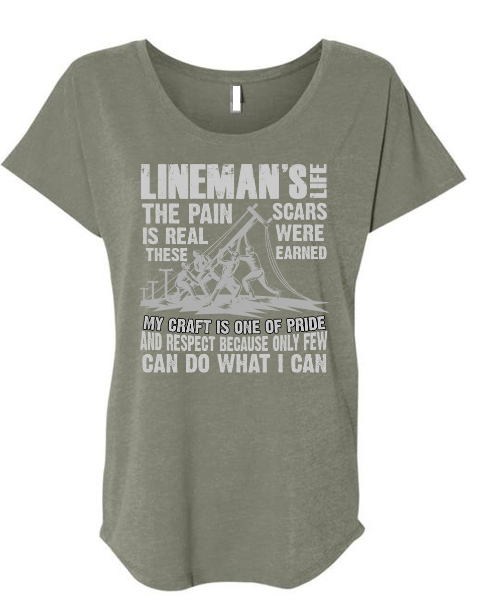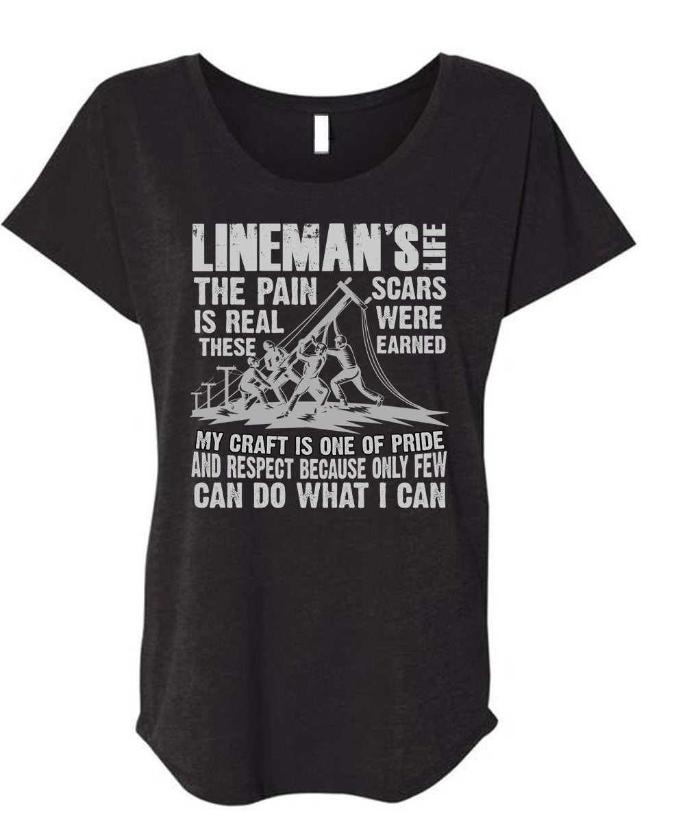 Lineman's Life T Shirt, The Pain Is Real T Shirt, Cool Shirt (Ladies' Triblend Dolman Sleeve)