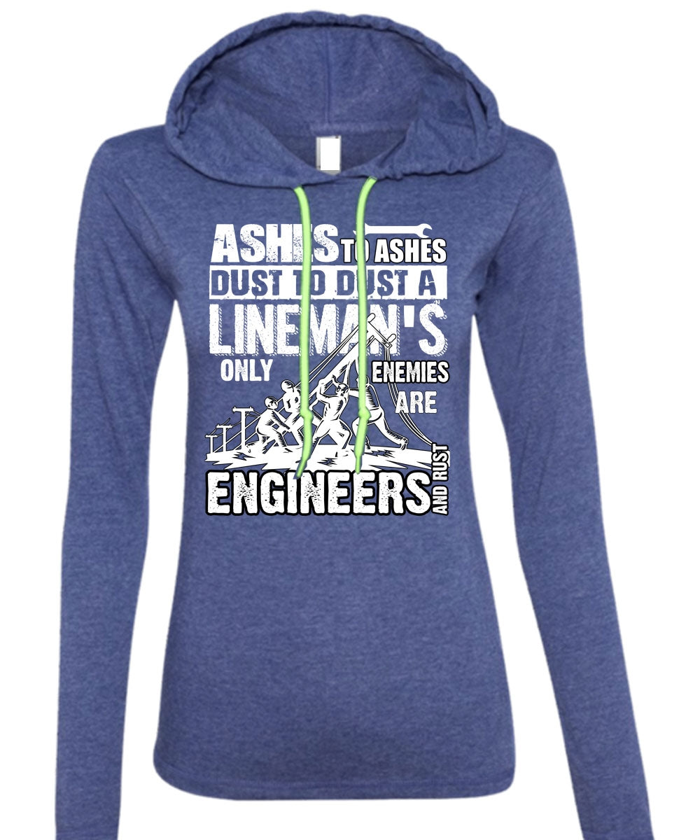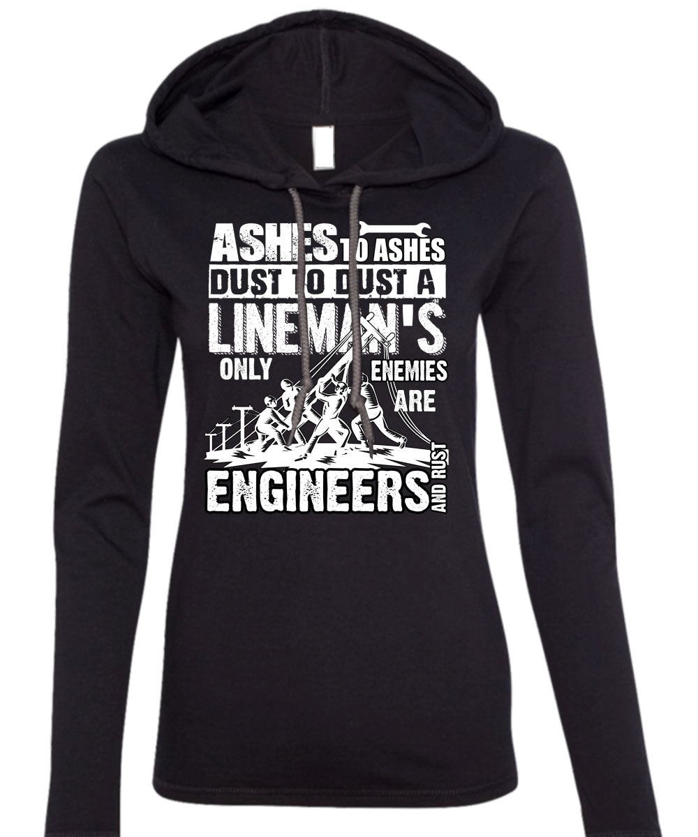 Lineman's Only Enemies T Shirt, Engineers And Rust T Shirt (Anvil Ladies Ringspun Hooded)