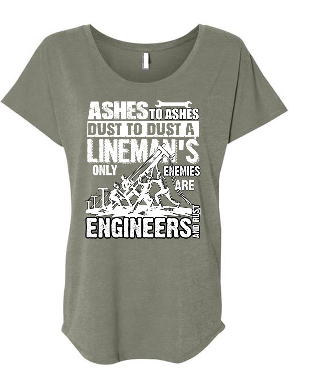 Lineman's Only Enemies T Shirt, Engineers And Rust T Shirt, Cool Shirt (Ladies' Triblend Dolman Sleeve)