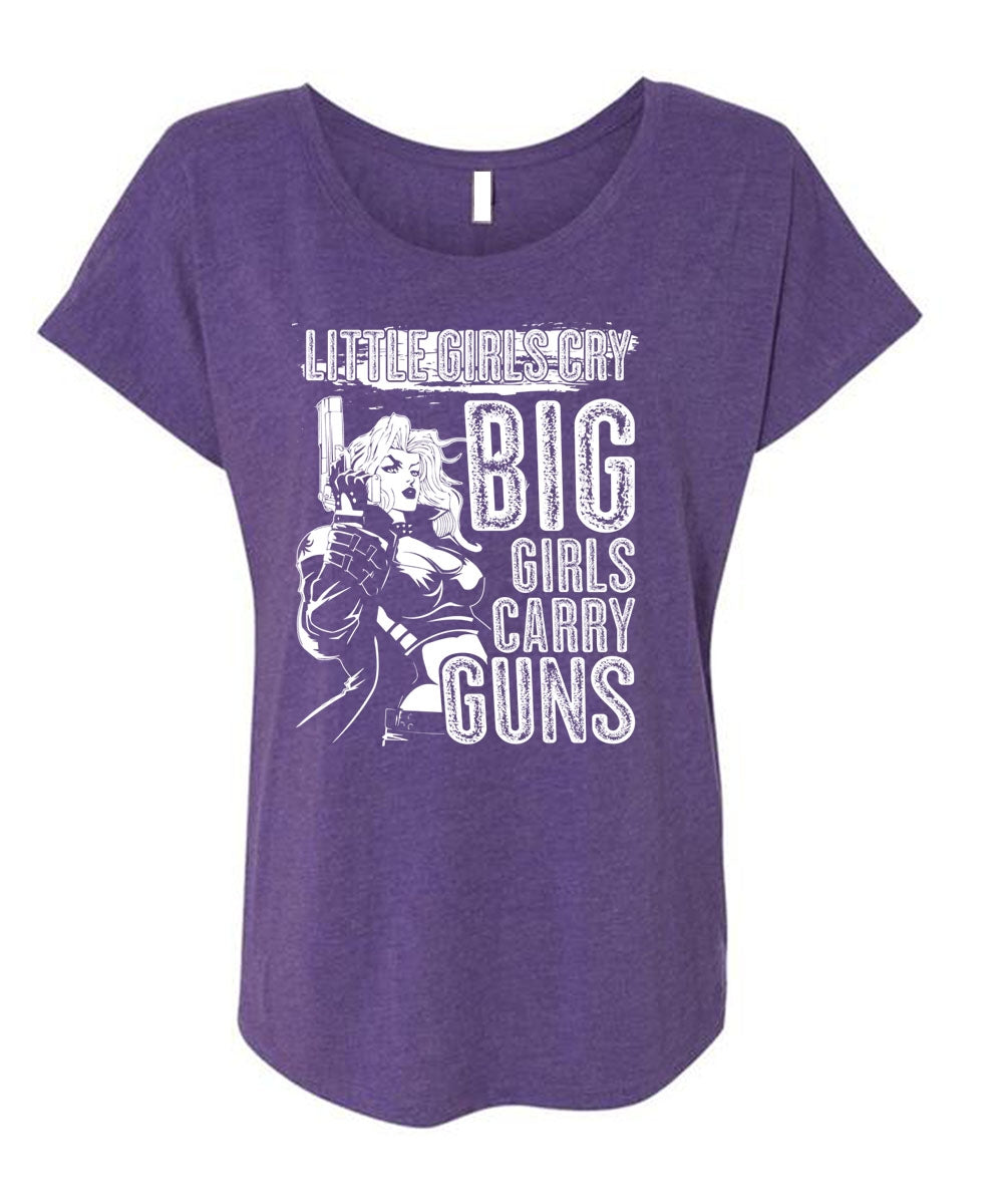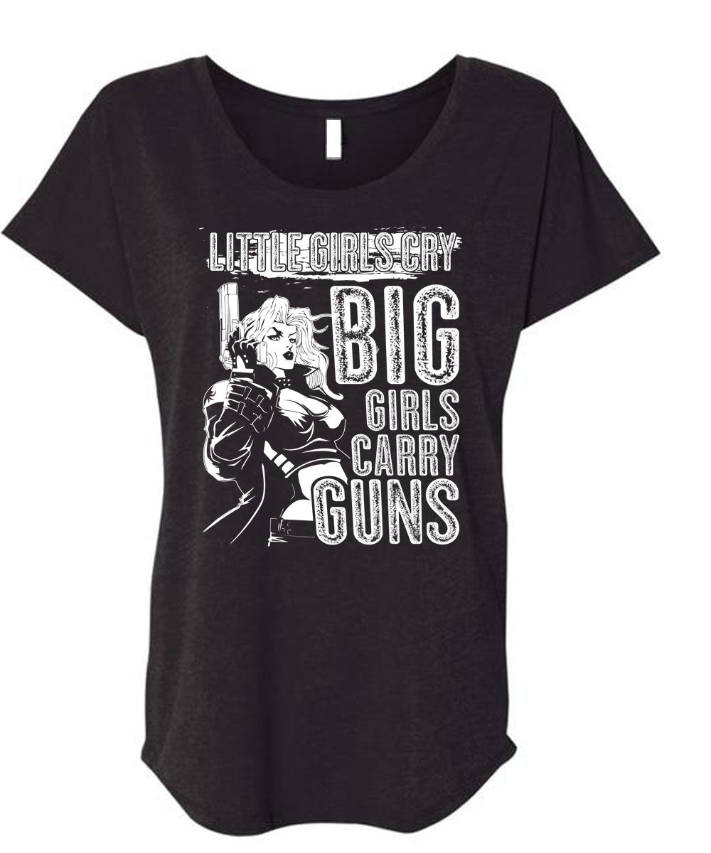 Little Girls Cry T Shirt, Big Girls Carry Guns T Shirt, Cool Shirt (Ladies' Triblend Dolman Sleeve)