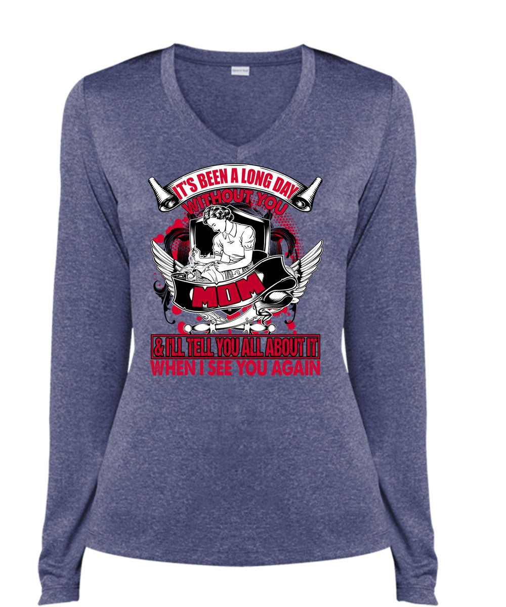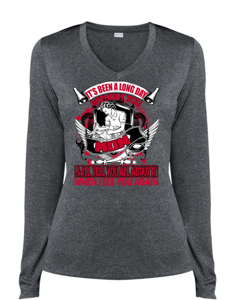 Long Day Without You Mom T Shirt, I See You Again T Shirt, Cool Shirt (Ladies LS Heather V-Neck)