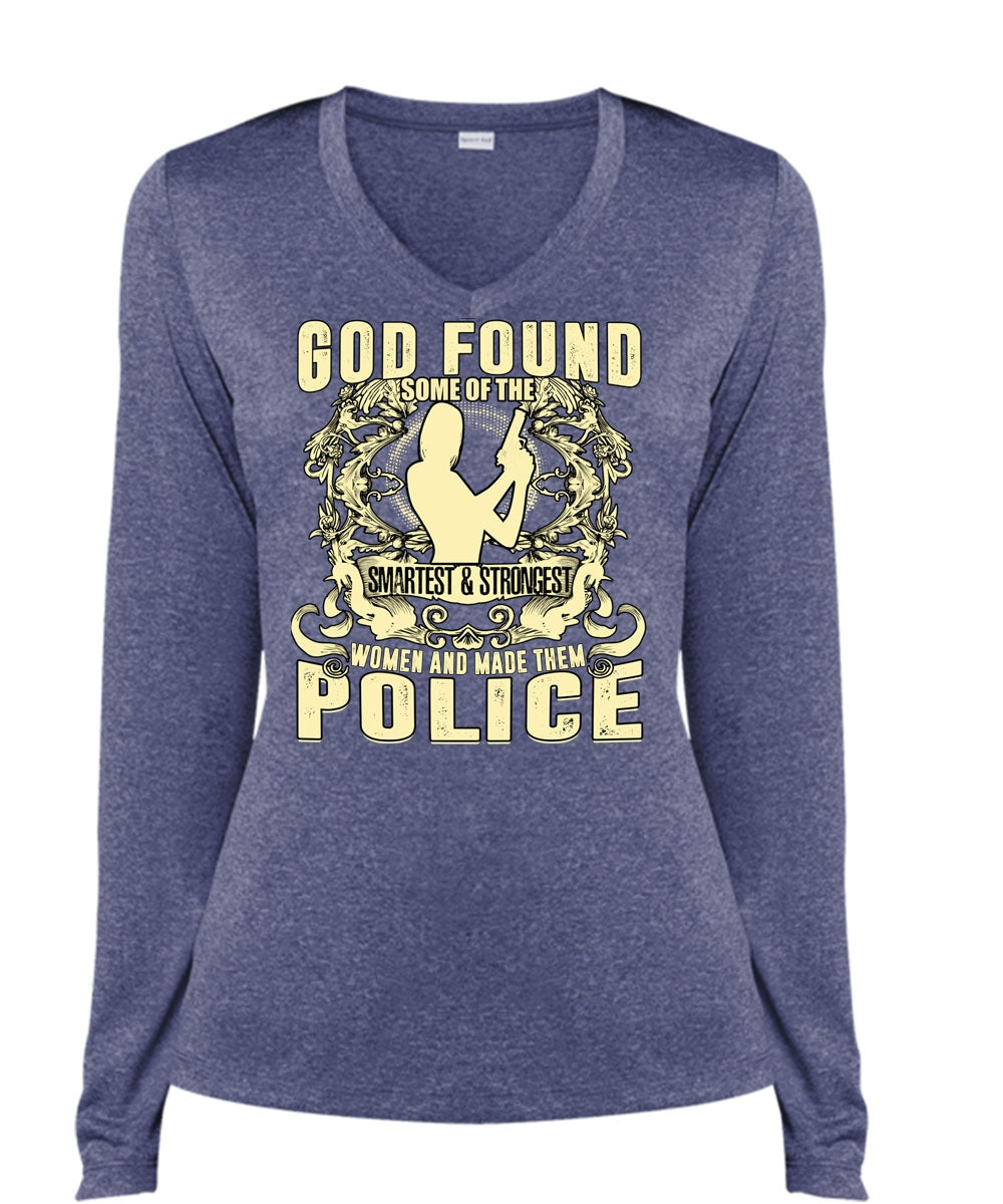 Made Them Police T Shirt, Smartest And Strongest T Shirt, Cool Shirt (Ladies LS Heather V-Neck)