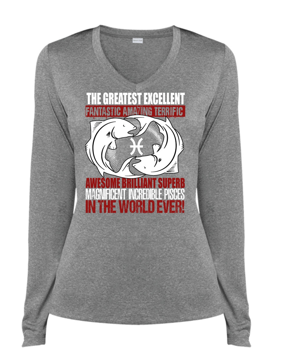 Magnificent Incredible Pisces T Shirt, The Greatest Excellent T Shirt, Cool Shirt (Ladies LS Heather V-Neck)