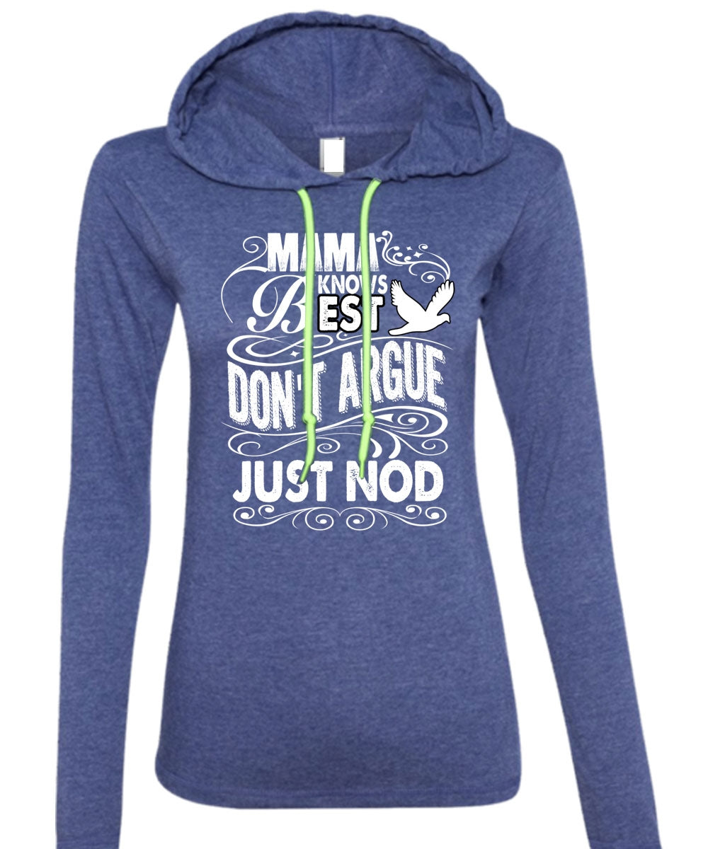 Mama Knows Best Don't Argue Just Nod T Shirt, Being A Mom T Shirt (Anvil Ladies Ringspun Hooded)